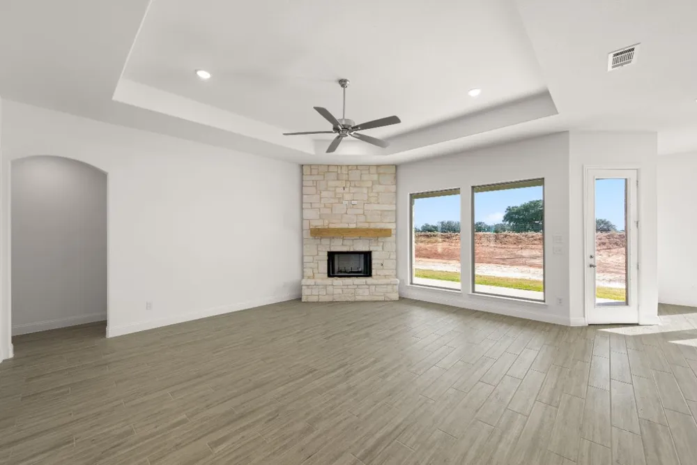 Nestled in the tranquil Brock Heights community of Brock, TX, this Doug Parr Home features The Curran Plan, Elevation A. Offering 4 bedrooms, 3.5 baths, and a 2-car garage, this home spans across Parker County within the esteemed Brock ISD.