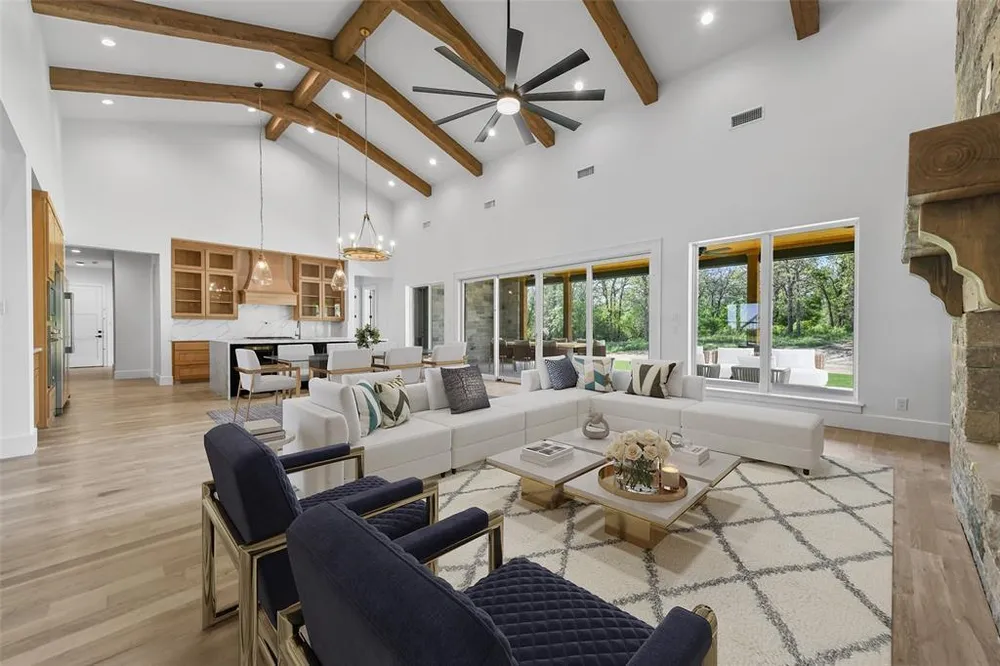 Gorgeous, custom estate designed by MK Homes is almost completed! This expansive home features 4 bedrooms along with 3 en-suite baths plus a half bath! Stunning, upgraded rock & stone elevation on all sides! Tons of upgrades including pine tongue and groove porches, Interior + exterior fireplaces, custom built-in beams throughout, office, game room + sitting room! Chef's Kitchen w-walk through Butlers Pantry, granite countertops, white oak cabinetry, + Bertazoni appliances! Other features include full foam encapsulation insulation, pella slider doors in master bedroom & living room, white oak wood floors throughout, rapid ridge shingles, 2x6 walls, iron front doors, frameless glass + upgraded Moen plumbing fixtures. Plenty of parking space w-an extended length 3 bay garage! Enjoy your evenings relaxing under the huge back porch overlooking the secluded 2 acre lot!