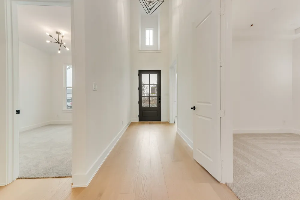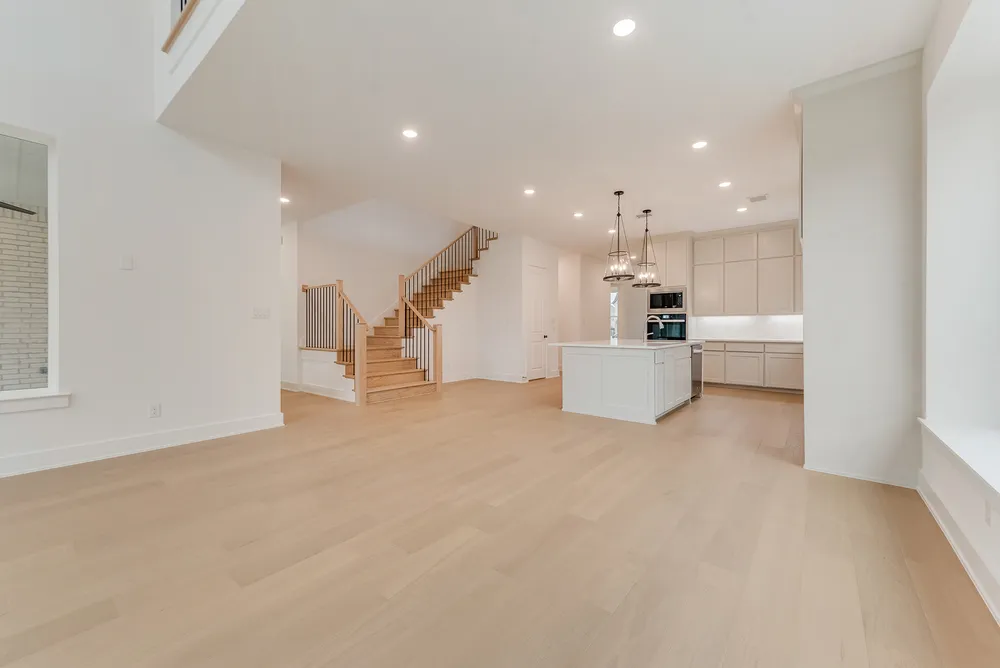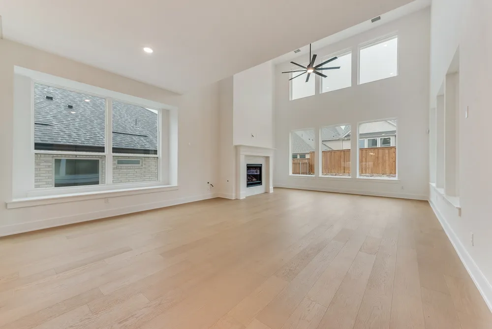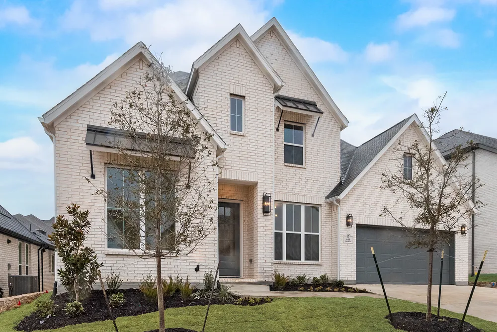 Westlake plan on a 60 lot features a 3-car tandem garage, 1st floor media room, 5 bedrooms/4 full baths, soaring ceilings in the study, family room, and main bedroom. Contemporary, neutral interior selections including warm white kitchen cabinets to the ceiling, quartz countertops, full oak stair treads, and engineered wood flooring in the main areas downstairs. Gameroom upstairs looks down to below. White brick exterior with charcoal accents and metal shed roofs enhance curb appeal. Upgraded tech & lighting package. Hilly, boutique community, Low HOA dues!