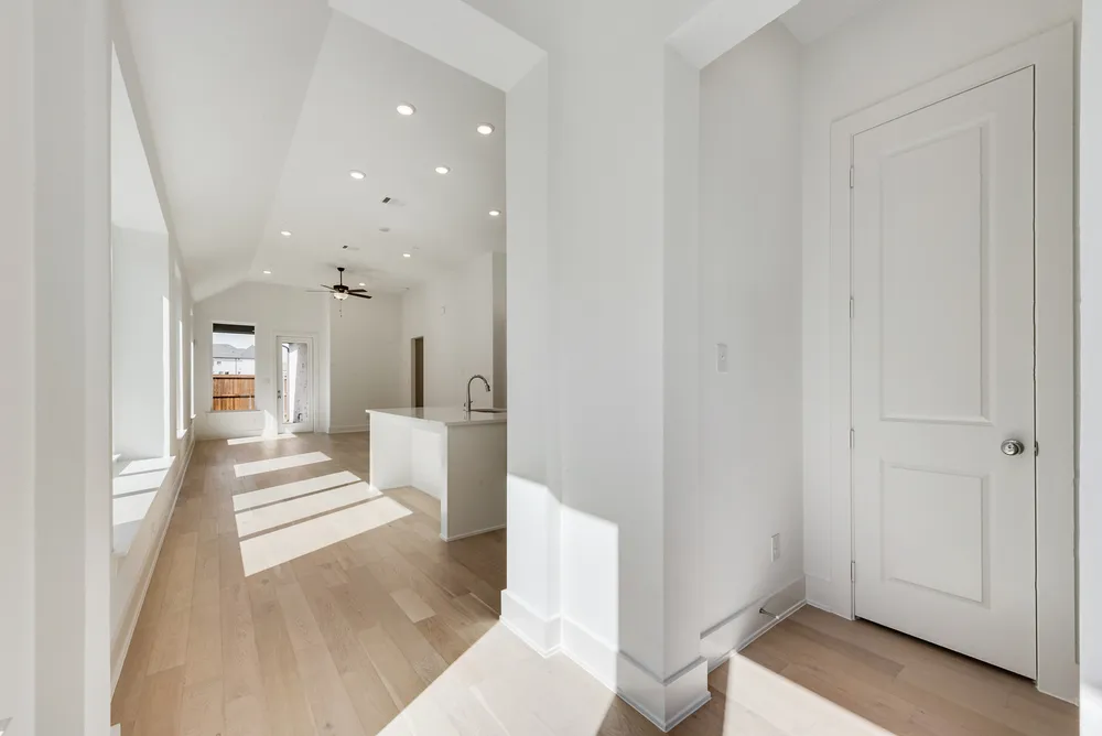 Popular open concept home has a dramatic beautiful gourmet kitchen with larger wood hood, has light quartz tops, upgraded built-in appliances, and walk-in pantry. Master Retreat offers bathroom with separate tub & walk-in shower. Additional upgrades include upgraded flooring, front door with beveled glass, pendant lights pre-wired over island in kitchen, 8 interior doors, and pre-plumbed for gas on back patio.
