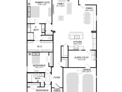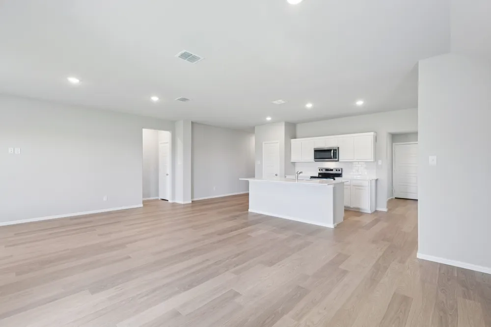Meet the Harrison, a three bedroom, two bathroom home blending cozy living with modern touches. A spacious primary bedroom with a walk-in closet and an en-suite bath is complemented by two secondary bedrooms, perfect for guests. The large family room opens to a contemporary kitchen, ideal for both relaxed weekends and casual entertaining.