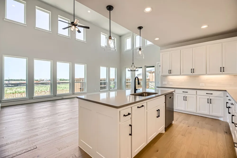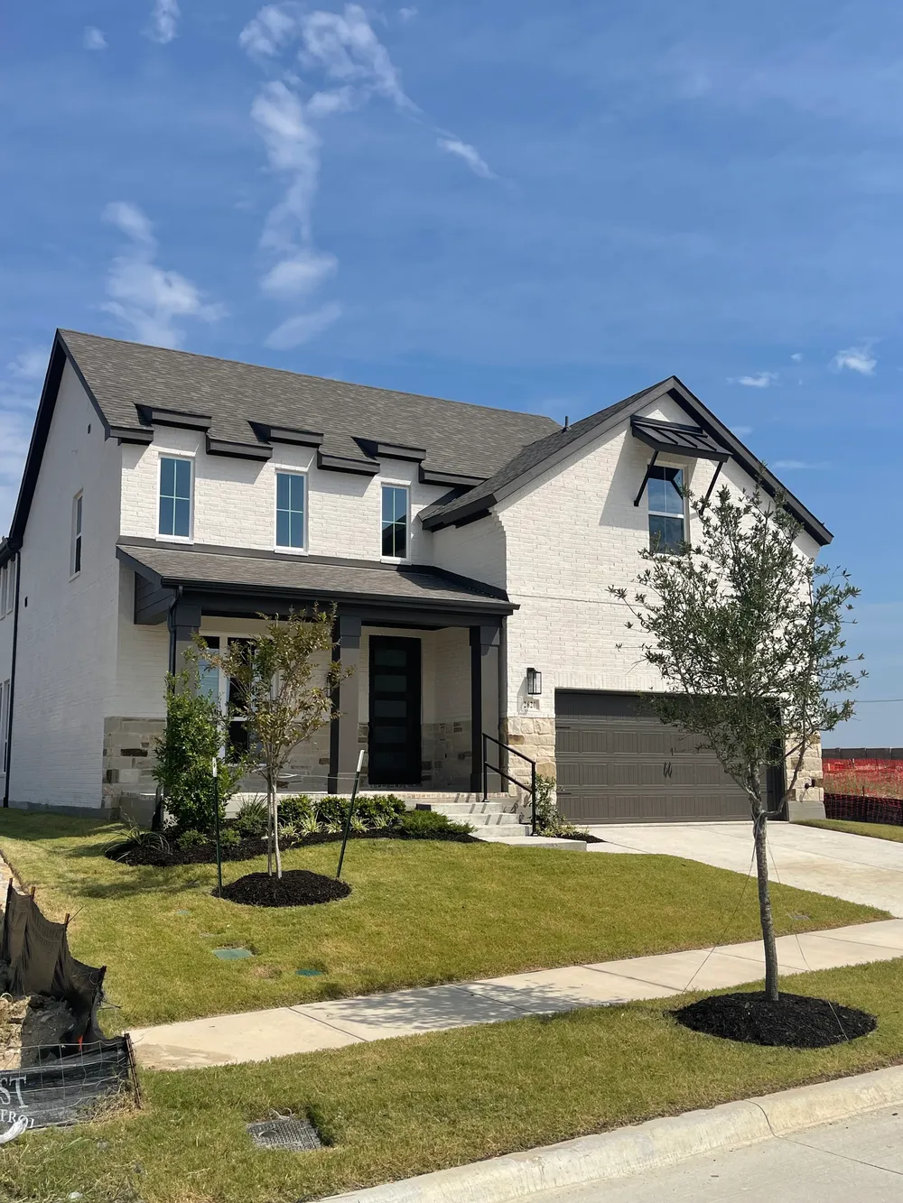 This home offers plenty of curb appeal with white painted brick and contrasting stone exterior, modern light fixtures , and a charming front porch. As you enter the home and walk past the study featuring dual single lite doors, you will find an exceptional first floor media room with a dry bar. The 18 foot entry ceilings extend into the family and dining rooms with floor to ceiling windows all around. The kitchen has so much space and features a walk-in pantry with the utility room nearby. The dramatic iron spindles on the staircase are only one of the beautiful views in this home. The main bedroom is sizable at 13'X21' and features dual closets. Upstairs each bedroom has its own bath. The yard features a stone retaining wall providing beauty and privacy. Attention to every detail has been considered in this home including the light contemporary wood color to the upgraded matte black lighting package and cabinet hardware. This home is a must see!