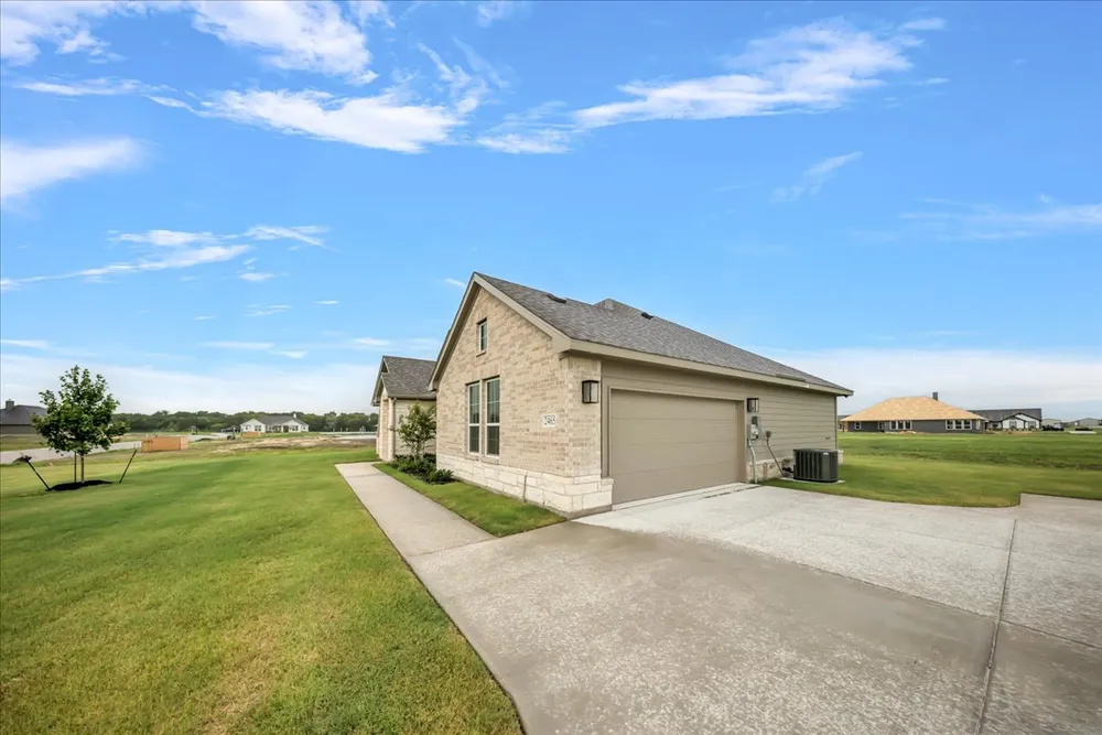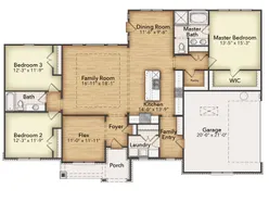 The Cibolo is a perfect example of how you can make a few adjustments to a floor plan to completely change the way it looks! We offer three options for the exteriorCraftsman, Farmhouse, and Europeanso you can choose your architectural preference. Inside, the 2,033-square-foot plan is designed with the busy family in mind. Keep all the main living concentrated in an open floor plan where walls dont divide you. Whether youre watching television in the large family room, entertaining in the dining room, or handling the kitchen duties, you can see everyone and everything. The kltchens center island functions like a hub. Sit down for a casual meal at the breakfast bar, sort the mail, catch up on the daily happenings, wash the dishes, or start prepping the next meal. Adjacent to the kitchen, you have the functional center of the home: mudroom and laundry. A hall bench and closet provide you with the organization you need to keep the clutter at bay. Your owner's suite is tucked away in the farthest corner of this single-level floor plan. Separated with a vestibule entrance, you have a private retreat. The owner's bath includes both a soaking tub and walk-in shower, plus dual vanities and a private water closet, so its very shareable. The other 2 secondary bedrooms of this split floor plan anchor the other side of the home where they share the second full bath. Both bedrooms are identically sized with plenty of space for anyone from a toddler to teen to another adult member of your household. The Cibolo also gives you the freedom of a flex room off the foyer. Convert it to the space you want to meet your needs.