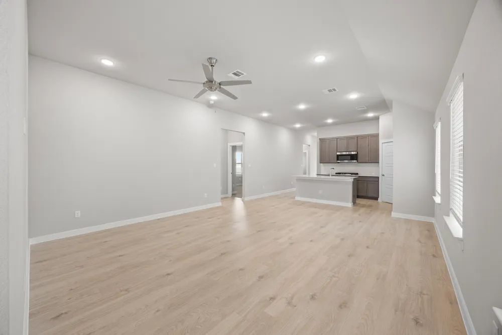 The Cypress, where contemporary elegance meets practical comfort. This thoughtfully designed floor plan offers an inviting blend of open spaces and refined details, making it perfect for both entertaining and everyday living. This layout creates a seamless connection between the kitchen, dining, and living spaces, enhancing the flow and openness of the home. The kitchen is a highlight, featuring a generous island with seating, premium appliances, and ample storage, making it both a functional workspace and a gathering spot.