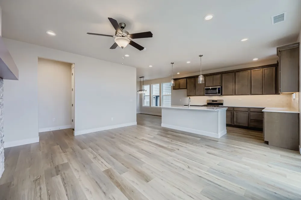 This charming 1955 square foot, 2-story home combines comfort and style with a functional layout, perfect for modern living. The inviting front porch welcomes you into an open main level that seamlessly integrates the kitchen, dining area and family room, creating a warm and spacious atmosphere. A convenient powder bath is also located on this floor, and there's a cozy fireplace too, for added charm. The functional kitchen layout offers plenty of counter space for entertaining, and don't forget about all of the enjoyment you'll experience in your fully landscaped yard with rear privacy fencing.Upstairs, you'll find a versatile loft space, ideal for recreation or relaxation. The spacious main bedroom is a serene sanctuary, with a large bathroom that includes an upgraded 5-piece bath. Two additional bedrooms, a full bathroom and a well-placed laundry space complete the upper level. A 2-car attached garage with an 8' door and a garage opener ensures ample parking and storage, making this home as practical as it is beautiful. You'll love the distinctive exterior with added stone. This home offers flexibility and timeless appeal.