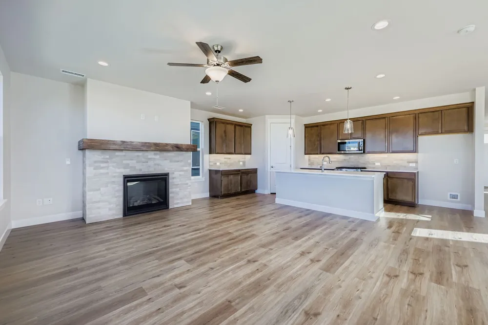 This enchanting 2336 square foot, 2-story home offers a perfect blend of curb appeal and functional design. The selected exterior elevation with added stone is sure to make a statement. This home features a spacious 2-car attached garage with an 8' door and garage opener, providing convenience and storage. The lovely front porch invites you inside, while the rear covered patio creates an ideal space for outdoor living in your fully landscaped and fenced yard.Inside, the main level is designed for comfort and style, with an open floor plan that seamlessly connects the kitchen, dining and family room with fireplace, making it perfect for both entertaining and everyday living. Upstairs you'll discover a total of 4 bedrooms and 3 full baths. The generous main suite is a true retreat, offering his and her walk-in closets and a tranquil atmosphere. This home isn't missing a thing, so come and experience it for yourself.