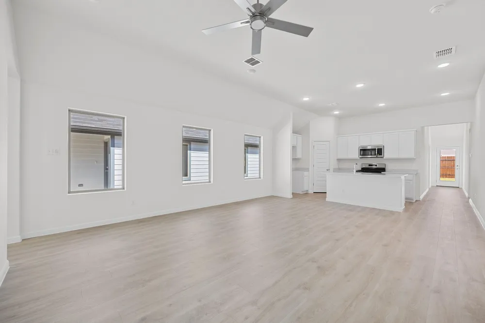 The Cypress, where contemporary elegance meets practical comfort. This thoughtfully designed floor plan offers an inviting blend of open spaces and refined details, making it perfect for both entertaining and everyday living. This layout creates a seamless connection between the kitchen, dining, and living spaces, enhancing the flow and openness of the home. The kitchen is a highlight, featuring a generous island with seating, premium appliances, and ample storage, making it both a functional workspace and a gathering spot.