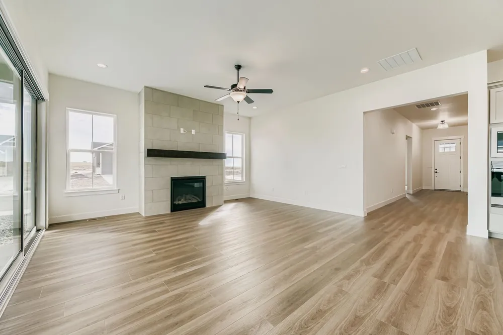 This luxurious ranch home, set on a large lot, offers 5 bedrooms, 3 full baths and a 4-car garage with a useful service door. The open-concept design includes a spacious family room, dining area and gourmet kitchen featuring upgraded cabinets, large island, and stainless steel appliances, perfect for entertaining. Sliding doors open to a beautiful backyard, while the family room features a cozy floor-to-ceiling fireplace and 10-foot ceilings. The main level also includes a laundry room conveniently located by the 4-car garage entrance, adjacent to a mudroom. The main bedroom suite is bright and spacious, with dual walk-in closets, dual vanities and designer tile accents. Two additional bedrooms and a full bath complete the main level. The finished basement features a large rec room with a wet bar, perfect for entertaining, as well as a guest bedroom with access to a full bath. The home includes fully constructed closets with shoe racks, a tankless hot water heater and a 96% efficiency-rated furnace. This home blends comfort, style, and functionality in a fantastic location on a fully landscaped lot.