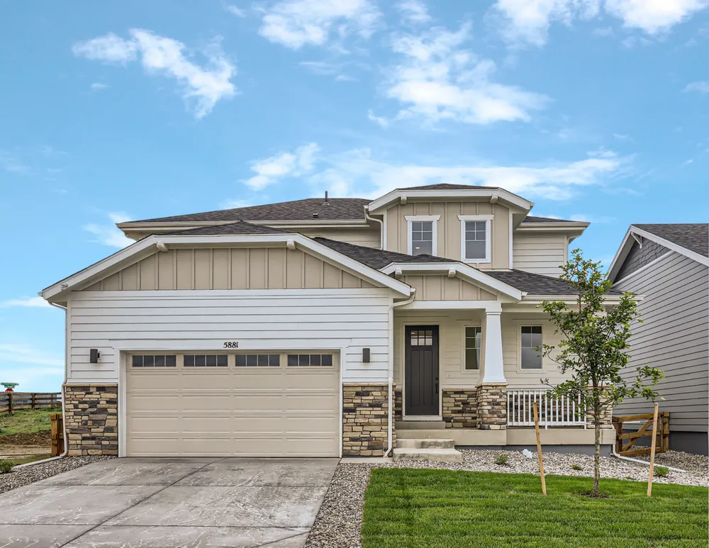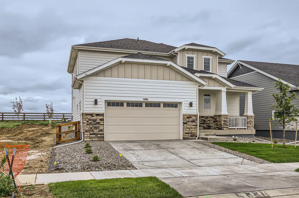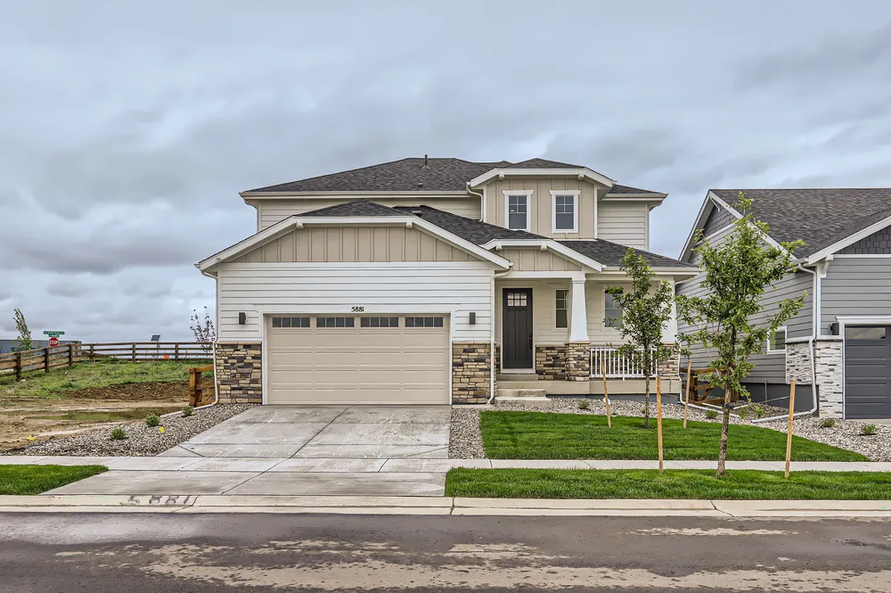 This 4-bedroom, two-story home includes 3.5 baths and a finished basement! This home has a charming front porch and perfect curb appeal. Enjoy a large and open family room, dining room and kitchen on the main level. Upstairs you will find the owner's suite and 2 additional bedrooms, both with walk-in closets. In the finished basement, you have a rec room plus an additional bedroom & bathroom! This stunning home has designer features throughout including a gourmet kitchen, a fireplace in the great room, matte black hardware, sleek quartz counter-tops and beautiful trim work. Upgraded cabinets with soft-close doors and soft-close dovetail drawers. Kitchen appliance package includes stainless steel with a 36" 5-burner gas cook-top, an exterior vented hood, microwave and convection oven. Home also features zoned A/C with 2 A/C units and smart thermostats for each level of the home. Enjoy the large covered outdoor patio for evening meals and summer entertainment. This South facing home backs to open space. Enjoy lake living where you can paddle board, kayak and fish. Enjoy miles of trails in the community where you can take a sunset stroll, enjoy a bike ride or take the dog for a walk. Other amenities include basketball and pickleball courts, fitness stations, outdoor grills & fire-pits, pavilion lawn, resort style outdoor pool (with a splash pad for kids) and a beautiful indoor community hub with remote working stations and a fitness center.