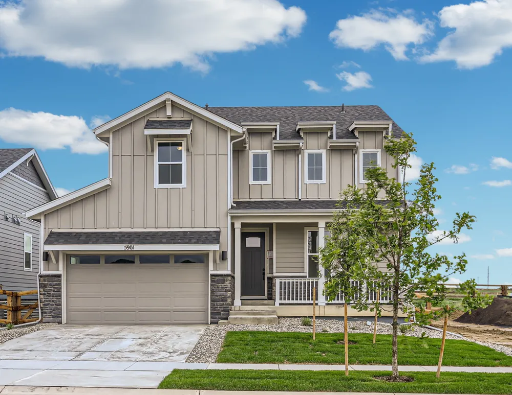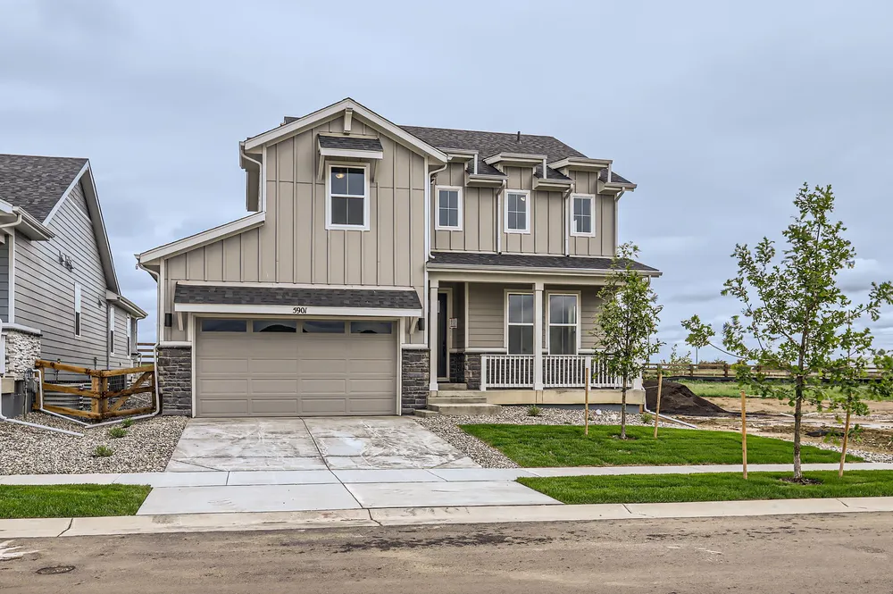 This 4-bedroom, two story home has a charming front porch and lots of curb appeal. Enjoy a main level bedroom and a full bathroom for guests or anyone that wants to avoid stairs. Home features a gourmet kitchen, five-piece spa-like bathroom in the upstairs owner's suite as well as two upstairs guest bedrooms both with walk-in closets. Home features separate dining and living areas on the main level and a covered outdoor dining/entertainment area. The beautiful quartz island in the kitchen is a great gathering place for friends and family. Kitchen also has upgraded soft close cabinets doors and soft close dovetail drawers. This home has an unfinished basement with room to add a rec room, bedroom and bathroom! Perfect for storage or to expand your home. American Legend Homes offers basement finishes, ask your sales associate for more information. This South facing lot backs to open space! Enjoy the 3-car tandem garage for all your storage needs. Come enjoy lake life! Barefoot Lakes features 2 lakes where you can paddle board, kayak and fish. Enjoy miles of trails in the community where you can take a sunset stroll, enjoy a bike ride or take the dog for a walk. Other amenities include basketball and pickleball courts, fitness stations, parks, outdoor grills with fire-pits, pavilion lawn, resort style outdoor pool (with a splash pad for the kids) and a beautiful indoor community hub with remote working stations and a fitness center. Ask about our current incentives to help you buy your dream home!