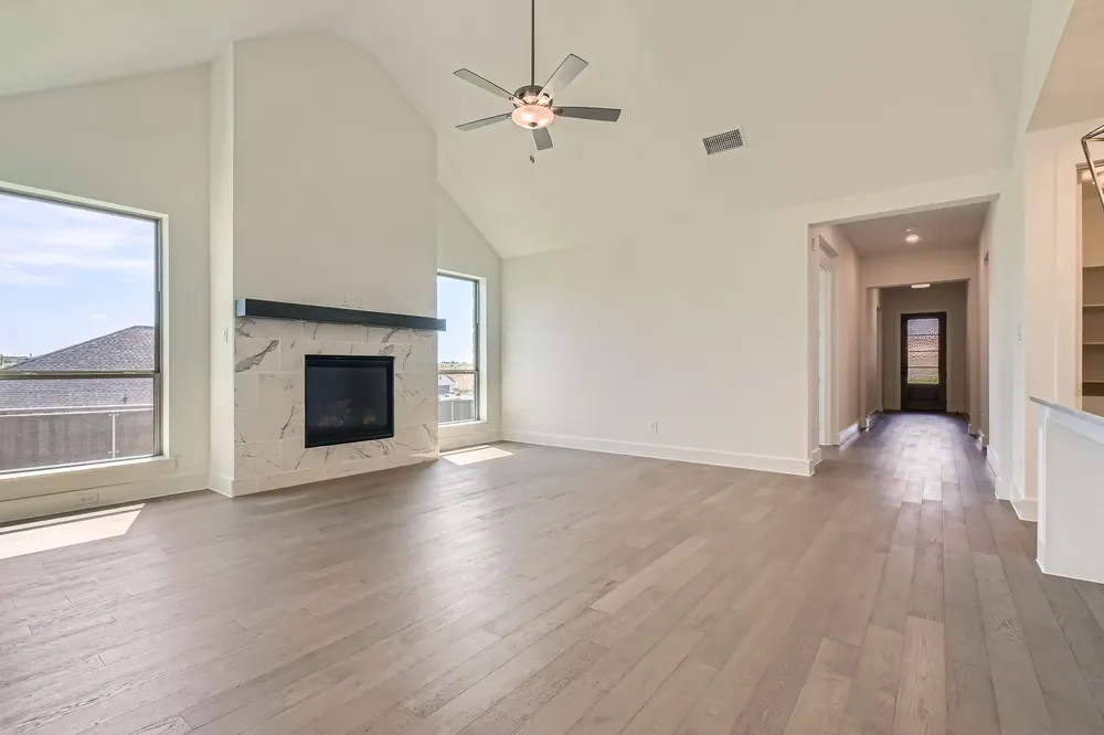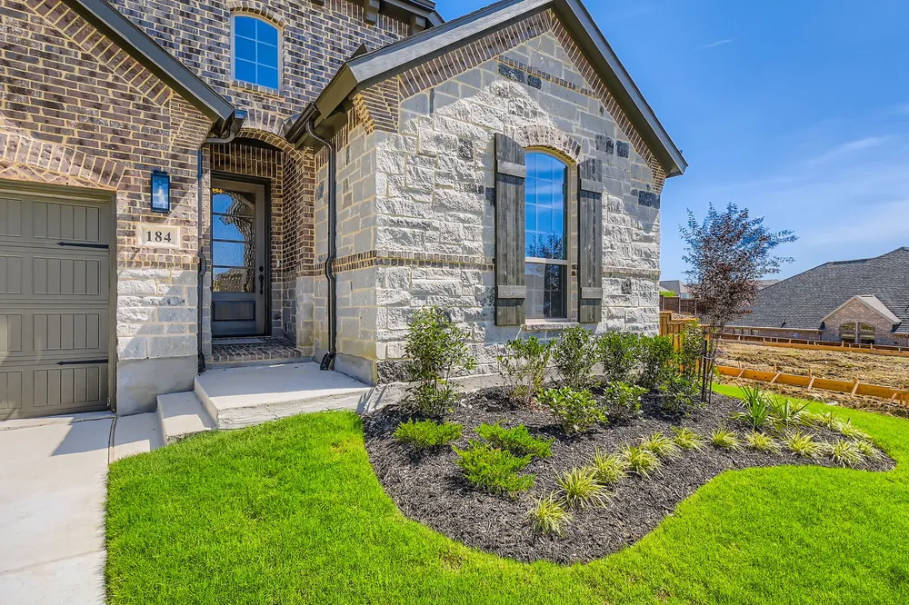 This is our top selling model plan with an upgraded brick and stone exterior . Walk inside and discover gorgeous hardwood floors throughout. In the heart of the home, you will find a spacious kitchen equipped with quartz countertops, Upgrade built in appliances, a large walk-in pantry, designer cabinetry, an abundance of counterspace and cabinets and a furniture style island that overlooks the dining area and family room with a cozy fireplace. With open style concept, entertaining will be a breeze. The main suite features a large bedroom, double door entry to the bath, with a soaker tub, separate glass enclosed shower, quartz countertops and a must-see walk-in closet. Your guests will enjoy the private bedroom with a full bathroom. The study has French glass doors, making for a quiet space for those work at home days. The two-car garage has insulated doors and openers. The covered outdoor living space, 8 foot doors, upgraded carpet and tile, make this a must see! Don't miss this amazing opportunity! Reunion Neighborhood is part of the award winning NISD school district with bus transportation. Easy freeway access to Fort Worth and DFW airport. Start making memories in your new American Legend Homes!!!