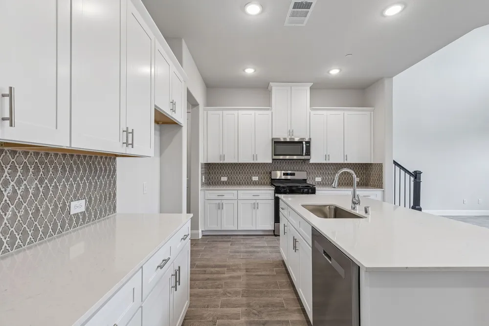 Aiden Plan - 2.99 Percent FIXED RATE for a 30 Year Mortgage (3.75 Percent APR) on Select Homes for a Limited Time Only - Villas of Middleton in Plano, TX offers centrally located town homes near UT Dallas, the DART station, and Legacy West. With private backyards and a future amenity center and pool, this community blends comfort with convenience. Visit our model home and discover why Villas of Middleton is the ideal place to call yours. Megatel's Aiden plan boasts a large kitchen open to both the Living and Dining areas. The Living area opens out to a covered patio perfect for entertaining and outdoor activities. On the Second floor, you will find a large Flex Room perfect for a second living area, study, or workout room! The Primary bedroom on the second floor has a large shower and walk-in closet!
