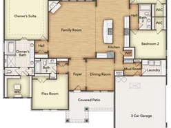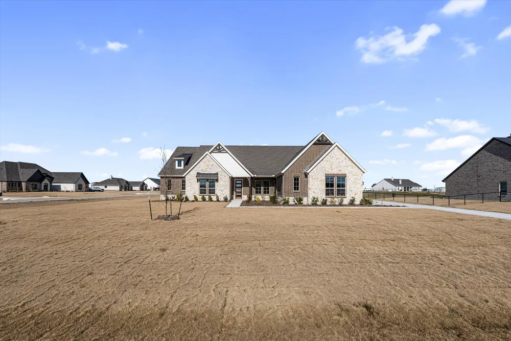 Discover an exceptional lifestyle in the Mockingbirda masterpiece of modern living by our team at Riverside Homebuilders. This sprawling single-story sanctuary spans 3,104 square feet and offers 4 bedrooms and 3 bathrooms, perfectly curated for a life of luxury and comfort. As you enter through the charming covered porch, the foyer beckons you inside, setting the stage for the grandeur that lies within.To the left, a versatile flex room stands ready to evolve into your personalized haven, whether it be a home office, gym or creative space. To the right, an elegant dining room awaits, ready to host cherished moments with loved ones. Continue through to the heart of the home, where the main living area unfoldsa vast family room with a cozy fireplace, an inviting nook and a chef-inspired kitchen boasting an elongated island, ideal for culinary adventures and entertaining. On the left side of the home, discover the secluded owner's suite, offering unparalleled privacy and tranquility. Enjoy the luxury of a spacious walk-in closet and a serene bathroom, creating an oasis of relaxation. On the opposite side, two traditional bedrooms await, each complete with its own walk-in closet, accompanied by a shared bathroomperfect for siblings or guests. Functionality reigns supreme with the laundry and mudroom conveniently situated just off the garage entrance. Finally, step outside to the expansive covered patio, seamlessly blending indoor and outdoor living and promising endless opportunities for relaxation and recreation. In the Mockingbird, luxury meets functionality, offering an unparalleled living experience for homeowners in DFW.