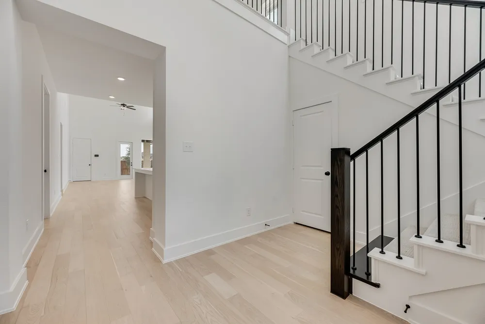 NEW CONSTRUCTION on a West-facing corner lot! This popular open-concept home features a dramatic two-story family room filled with natural light. The beautiful gourmet kitchen includes light quartz countertops and upgraded built-in appliances. A walk-in pantry provides ample storage. The master retreat offers a luxurious bathroom with a separate free-standing tub and shower.Additional upgrades include engineered wood flooring, metal railing on the stairs and overlooking the game room, a front door with beveled glass, elegant pendant lights pre-wired over the kitchen island, and 8 interior doors on the first floor.