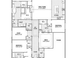 This stunning four-bedroom, one-story home has it all- media room, home office, open kitchen, dining area and private main suite in the back of the house. As you enter the foyer, you will find bedrooms 2 & 3 along with their shared full bathroom. Across the hall is the media room that is next to the mud room off the garage. Towards the end of the foyer is the spacious home office, powder bathroom and laundry room. The family room is complete with a wall of windows that face the outdoor living space. This flows into the kitchen and dining area. Bedroom four is located off of the living room with its own full bathroom and walk-in closet. The secluded main bedroom includes a large bathroom with dual vanities, walk-in shower, bathtub and two walk-in closets. The outdoor living space is great for the grilling chef to entertain. The 3-car tandem garage is a plus and the home faces East!