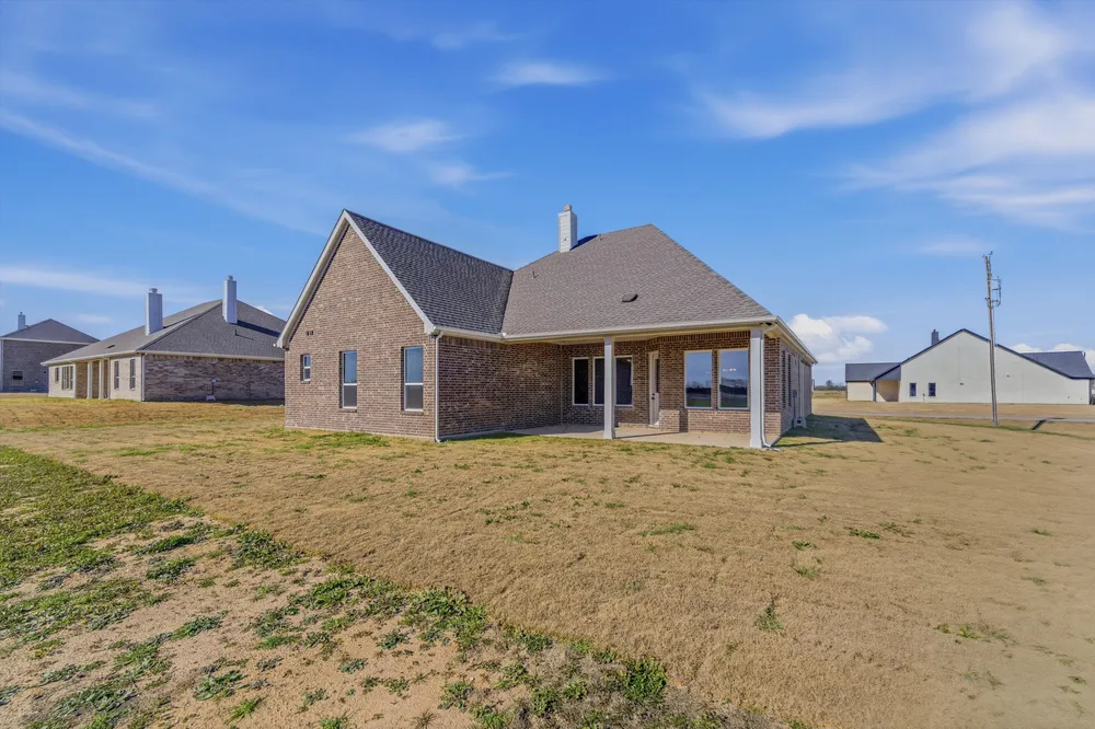 The Verbena floor plan features a modern, open-concept layout and the sought-after features todays homeowners are searching for. With four bedrooms, three bathrooms, and a flex room, this plan boasts just over 2,400 square feet of functional living space. Upon entering the home off the front porch, youre welcomed by an inviting foyer. Immediately to the left is a hallway with a bedroom, walk-in closet and full bathroom, as well as a linen closet. Across the foyer is a flex room, perfect for a home office, formal dining room or whatever need your family has for the space. Past the foyer is the family entry, with storage space and mud bench, which leads to the laundry room and two or three car attached garage. Through the entrance, the home opens up to a large family room with a stately fireplace. Adjacent to the family room is a gourmet kitchen, equipped with a walk-in pantry, ample counter space and an oversized island. Finishing off this open-concept living area is a dining space which overlooks the covered back patio. The remainder of this one-story floor plan is just off the living space. A hall leads to two bedrooms with walk-in closets, another linen closet and a shared full bathroom. The back corner of the home offers privacy for the owners suite, featuring a massive walk-in closet and bathroom with a dual-sink vanity, standalone soaking tub and glass-enclosed shower.