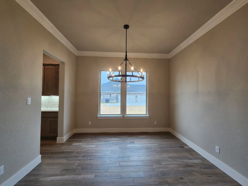 Step into the Bluebonnet by Riverside Homebuilders and embrace a lifestyle of comfort and functionality. With 4 bedrooms and 3 bathrooms sprawled over 2,686 square feet, this single-story haven offers ample space for every member of the family. As you enter through the inviting porch, the airy foyer sets the tone for the home's open layout. To the left, a flex room awaits, beckoning to be transformed into your ideal spacewhether you envision a home office, gym or hobby room. Continue through the foyer to discover the heart of the homea luminous dining room bathed in natural light. Beyond lies the main living area, a seamless fusion of the expansive kitchen, cozy family room featuring a fireplace and a charming nook adorned with picturesque windows. On the right wing of the home, privacy awaits with three traditional bedrooms and a breathtaking owner's suite. The owner's retreat boasts a spacious walk-in closet and a spa-like bathroom, offering a sanctuary for relaxation. Convenience is paramount with the laundry situated just off the bedrooms, accompanied by a mud bench near the garage entrance. To embrace the beautiful DFW weather without having to leave your home, step outside to the generous covered patiowhere endless possibilities for outdoor enjoyment await. With its thoughtful design and inviting atmosphere, the Bluebonnet embodies the epitome of charming Texas living for all families alike.