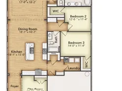 The San Saba has been a popular choice of homebuyers since we first introduced it. With the San Saba III, Riverside Homebuilders has taken the best features and expanded this flexible home design. The latest version of the floor plan adds nearly 100 square feet, totaling 2,266 square feet of interior living space. Weve kept the 3 bedrooms and 2 baths from the original floor plan, along with the walk-in closet for each of the bedrooms. The owners suite maintains the elegance of the tray ceiling in the bedroom and the spacious, smart design of the en suite bathroomwith both a soaking tub and walk-in shower, plus dual vanities and private water closet. In the San Saba III, the open concept spans the full length of this single-level home. Weve situated the kitchen a bit differently, making it quicker to access the laundry and mudrooms by the garages family entrance. The pantry is incorporated into the mudroom space, so unloading groceries is a simpler task. With the entrance from the foyer, the flex room in the San Saba III can easily function as a formal dining or living room. Add double doors, if you like, and the space works well as a home office or study. Maybe you want a fourth bedroom in your new home. This room is standard with a closet so it can easily be adapted to fill that role. The open concept in the main living area and the thoughtful placement of the bedrooms with vestibule entry presents the perfect balance of togetherness and privacy. Add in the covered patio for an outside living space that extends the comfort of this Riverside home.