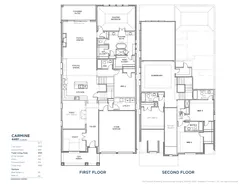 Model Floorplan: The Carmine features an inviting 20-foot foyer that welcomes you into an open layout, highlighted by a dramatic two-story family room with a fireplace and just the right number of windows for ample natural light. The chefs kitchen flows seamlessly into the living and dining areas, making it ideal for entertaining. A downstairs media room offers a dedicated space for movie nights. Luxury features include nail-down red oak wood flooring in focal areas, 8-foot doors on the first floor, designer lighting, and elegant quartz countertops in the kitchen. The upstairs game room overlooks the family room below. Enjoy five full baths! The exterior facade showcases warm cream-painted brick. Upgraded technology and lighting package included. No MUD or PID taxcome enjoy country living with city amenities!