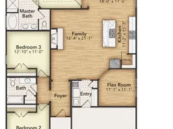 Experience the feeling of home in our Cascade II floor plan. Welcome family and friends into this 3-bedroom, 2-bath, ranch-style home with a spacious open floor plan. From cooking to dining to relaxing by the fire, this continuous design lends itself to entertaining for all occasions. As you walk through the foyer, to the left, the second and third bedrooms are perfectly situated for a private guest getaway. On the right, utilize the flex room for a home office, craft room or play area for young kids. This unique space offers the chance to customize your home to fit the needs of your family. Continuing through to the open kitchen, the extended countertops and island are the ideal workspace for anything from a simple family dinner to a culinary masterpiece. A walk-in pantry with two walls of storage means maximum space for all your snacks and ingredients. Situated in the back corner, the owners suite is the epitome of space and comfort. With a door right off the family room, this bedroom gives you a lot of natural light and easy access to the outdoor covered patio. A double-sink vanity means youll never have to share space again. Complete with a stand-up shower, tub, and walk-in closet, this space has all the amenities for ideal living.