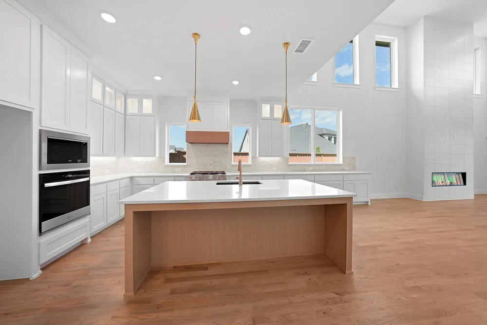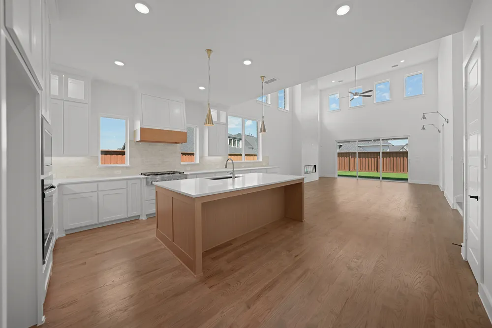 Welcome to your new home. This stunning 5-bed, 4bath, nestled on the quiet side of the neighborhood. This beautifully designed farmhouse elevation honors the history of the land and a thoughtfully designed layout perfect for modern living. Inside youll find a dedicated study and formal dining space, offering a perfect balance of family and functionality. The homes gourmet kitchen features high end finishes. When you travel up the curved staircase, you see the loft space. The media room is ideal for movie nights and living room with 19ft ceilings, it makes it easy to entertain anywhere in the home. With 5 generously sized bedrooms, including a luxurious primary suite, and four baths ensure convenience.