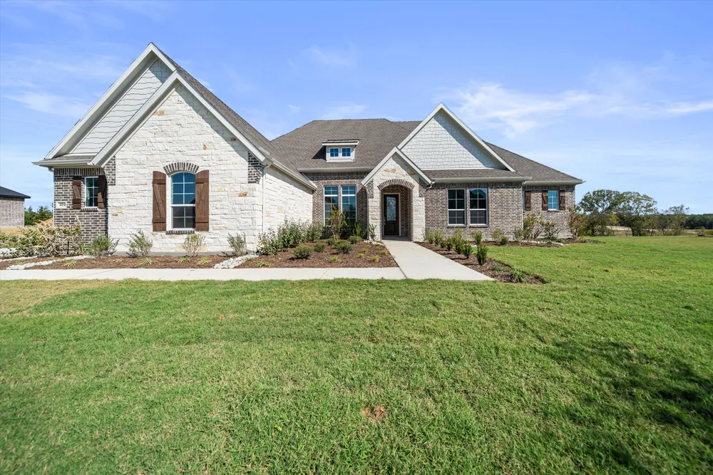 Discover an exceptional lifestyle in the Mockingbirda masterpiece of modern living by our team at Riverside Homebuilders. This sprawling single-story sanctuary spans 3,104 square feet and offers 4 bedrooms and 3 bathrooms, perfectly curated for a life of luxury and comfort. As you enter through the charming covered porch, the foyer beckons you inside, setting the stage for the grandeur that lies within.To the left, a versatile flex room stands ready to evolve into your personalized haven, whether it be a home office, gym or creative space. To the right, an elegant dining room awaits, ready to host cherished moments with loved ones. Continue through to the heart of the home, where the main living area unfoldsa vast family room with a cozy fireplace, an inviting nook and a chef-inspired kitchen boasting an elongated island, ideal for culinary adventures and entertaining. On the left side of the home, discover the secluded owner's suite, offering unparalleled privacy and tranquility. Enjoy the luxury of a spacious walk-in closet and a serene bathroom, creating an oasis of relaxation. On the opposite side, two traditional bedrooms await, each complete with its own walk-in closet, accompanied by a shared bathroomperfect for siblings or guests. Functionality reigns supreme with the laundry and mudroom conveniently situated just off the garage entrance. Finally, step outside to the expansive covered patio, seamlessly blending indoor and outdoor living and promising endless opportunities for relaxation and recreation. In the Mockingbird, luxury meets functionality, offering an unparalleled living experience for homeowners in DFW.