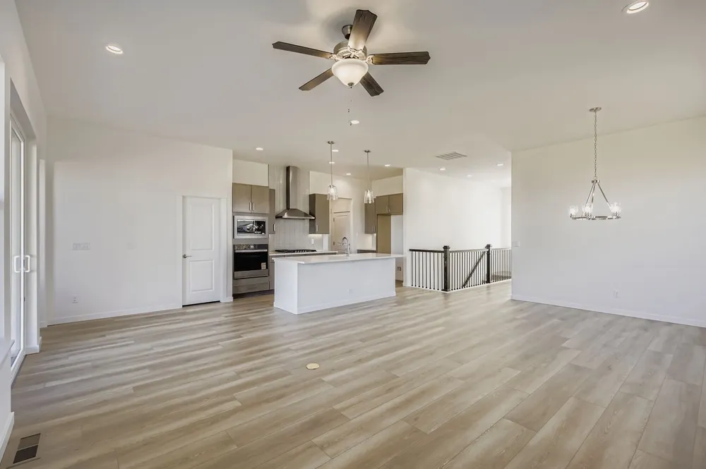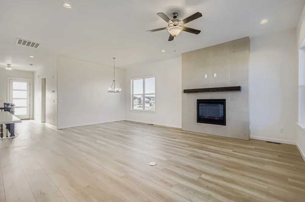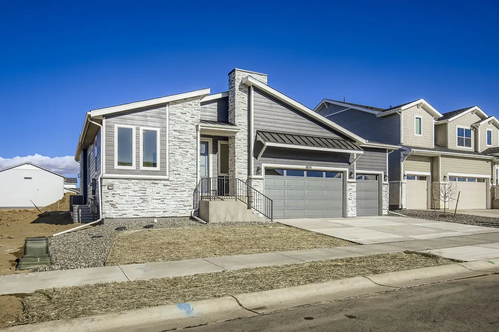 This exquisite 4 bedroom, 3 bathroom open-concept ranch-style home spans 2,688 square feet of meticulously designed living space. The main level greets you with a spacious entry and family room, dining area and a gourmet kitchen seamlessly integrated for effortless entertaining. The 10-foot ceilings make this area bright and welcoming. The kitchen showcases upgraded 42" cabinetry in stained Almond with slab doors, a large Quartz island, a walk-in pantry and premium stainless-steel appliances featuring a 36" gas cooktop and built-in oven & microwave, making it a chefs dream. The main suite offers a tranquil retreat with ample natural light, generous walk-in closet and a spa-inspired bathroom. A secondary bedroom with bath including a walk-in shower and a conveniently located laundry room near the garage entrance complete the main floor. The family room features a floor-to-ceiling tiled fireplace and opens onto an inviting large outdoor covered patio. The finished basement expands the homes versatility with a large recreation room, two guest bedrooms, full bath and an unfinished storage space. Additional highlights include a 3-car garage, custom-built closets with shoe racks, a tankless water heater and a high-efficiency furnace. American Legend Homes combines style, comfort, and practicality. This home is a true masterpiece.