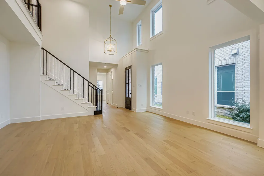 This beautiful Townhome, built by renowned builder American Legend Homes, is located in the highly sought-after Castle Hills master-planned community in Lewisville, TX. Featuring 4 spacious bedrooms, 3 baths, bath, game room, media room and 2-car garage, this home merges the comforts of single-family living with the low-maintenance lifestyle of a townhome. The main bedroom, conveniently located downstairs, offers a peaceful retreat with plenty of natural light and modern finishes. The open-concept living area is filled with natural light, thanks to floor-to-ceiling windows, customized with wood floors downstairs. The heart of the home is its state-of-the-art kitchen, perfect for cooking and entertaining. With high-end appliances, quartz countertops, custom cabinets and a functional layout, this kitchen will impress even the most discerning chefs. Enjoy movie nights and endless fun with the dedicated media room and game room, providing the ultimate spaces for relaxation and entertainment. Whether you're hosting gatherings or enjoying quiet moments, this townhome offers the perfect blend of luxury, comfort and convenience, all within the prestigious Castle Hills Northpointe community.