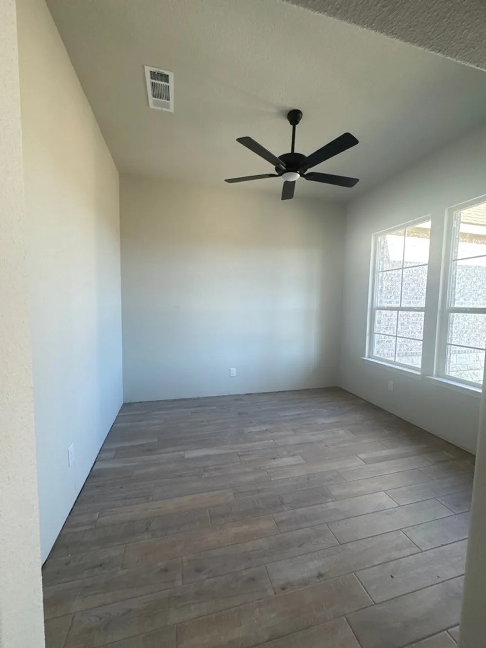 The Verbena floor plan features a modern, open-concept layout and the sought-after features todays homeowners are searching for. With four bedrooms, three bathrooms, and a flex room, this plan boasts just over 2,400 square feet of functional living space. Upon entering the home off the front porch, youre welcomed by an inviting foyer. Immediately to the left is a hallway with a bedroom, walk-in closet and full bathroom, as well as a linen closet. Across the foyer is a flex room, perfect for a home office, formal dining room or whatever need your family has for the space. Past the foyer is the family entry, with storage space and mud bench, which leads to the laundry room and two or three car attached garage. Through the entrance, the home opens up to a large family room with a stately fireplace. Adjacent to the family room is a gourmet kitchen, equipped with a walk-in pantry, ample counter space and an oversized island. Finishing off this open-concept living area is a dining space which overlooks the covered back patio. The remainder of this one-story floor plan is just off the living space. A hall leads to two bedrooms with walk-in closets, another linen closet and a shared full bathroom. The back corner of the home offers privacy for the owners suite, featuring a massive walk-in closet and bathroom with a dual-sink vanity, standalone soaking tub and glass-enclosed shower.