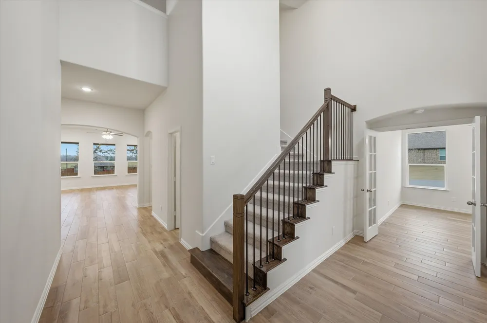 If you love options, the Neches floor plan provides three distinctive elevations. You can select the exterior that best matches your style. No matter which version of the Neches you choose, walking through the front door will lead you into a beautiful, 2,891-square-foot home with 4 bedrooms, 3.5 bathrooms, and a 3-car garage. As soon as you enter the foyer, you have an adjacent studyor whatever way you want to use this flex room. Stroll past the staircase, powder room, and vestibule that leads to a bedroom with an ensuite bathroom. Straight ahead, the home opens up into a spacious, open concept floor plan that is perfect for entertaining or hosting family for the holidays. The family room connects with a chefs kitchen that includes the convenience of a large island, double sink, and walk-in pantry. Just beyond the kitchen is your casual dining area that serves up views of the covered patio and the backyard beyond. The mudroom and laundry room have a family entrance, a great area to organize shoes, backpacks, keys, and more. The split floor plan situates the owners suite on the opposite side of the family room. This spa-like master bathroom treats you to a separate tub and shower, double vanity, and walk-in closet. Head upstairs to a large game room. You and your family will enjoy the loft design, like an extension of your first-floor open floor plan. The second floor has also two more bedrooms, and one has a private bath. The Neches offers flexibility, convenience, and style that is designed to fit your lifestyle and bring your Riverside home to life.
