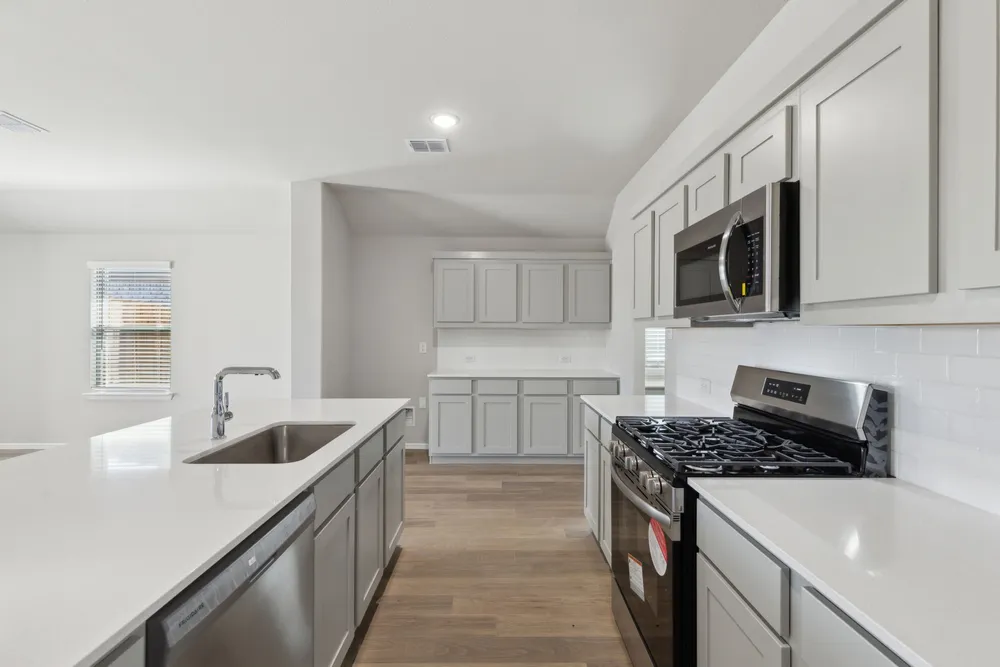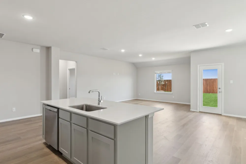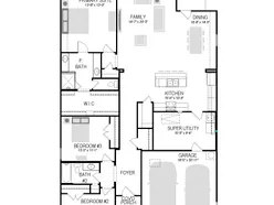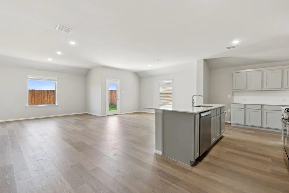 Meet the Harrison, a three bedroom, two bathroom home blending cozy living with modern touches. A spacious primary bedroom with a walk-in closet and an en-suite bath is complemented by two secondary bedrooms, perfect for guests. The large family room opens to a contemporary kitchen, ideal for both relaxed weekends and casual entertaining.