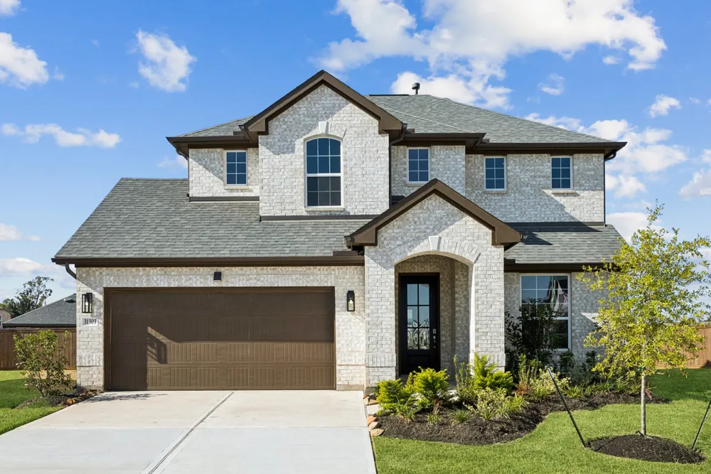 Annabelle III - LAGOON LIVING - Lagoon life is coming to Huffman ISD! Discover Saint Tropez, a peaceful community found in Huffman, Texas that seamlessly blends suburban charm with rural tranquility, offering families a peaceful living experience. Whether you're enjoying a drink at the swim up bar, breaking a sweat in the state-of-the-art fitness center, or engaging in some friendly competition at the bowling alley, coming home here is a daily retreat. Megatel Homes Annabelle III Plan is a two-story, 2,418 square foot home featuring four bedrooms, three and a half bathrooms, a covered patio, and a two-car garage. Situated on a 50 ft lot, this home is available with elevation A, showcasing a distinct and stylish exterior design. Why settle for the hustle and bustle when you can embrace the tranquility?