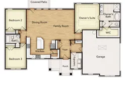 Riverside Homebuilders keeps family dynamics in focus when it designs floor plans and The Bryson is no different with designated areas for play, mixed with functional elements that keep things running smoothly. The Bryson is a single-story floor plan that measures 1,867 square feet with three bedrooms, two bathrooms, and a two-car garage. Guests enter through a covered porch and into the foyer. A large, open gathering area lies ahead with a connected kitchen, family room, dining room, and covered patio making for easy year-round entertaining. The kitchen features an oversized island with seating that overlooks the space and a walk-in pantry to simplify meal preparation. This space serves as the heart of the home. The owner suite is located down a short hallway behind the garage which offers extra privacy from the main living area. The two additional bedrooms are on the opposite side of the home with a shared bathroom between them. This plan also includes a private family entrance from the garage which connects to the foyer. The Bryson is available in several elevations to meet your familys unique style. The plan also offers flexibility with a number of optional layout changes including a laundry sink, built-in kitchen appliances, owners suite upgrades, or added garage space.