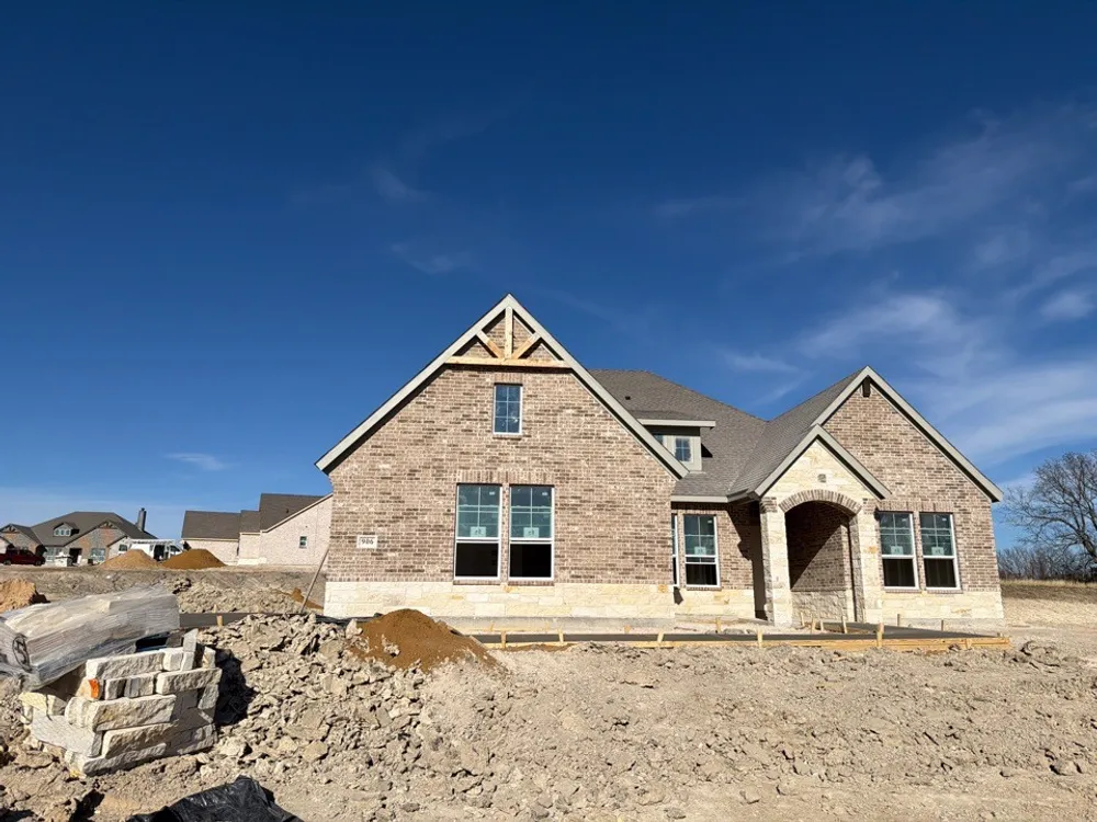 The Verbena floor plan features a modern, open-concept layout and the sought-after features todays homeowners are searching for. With four bedrooms, three bathrooms, and a flex room, this plan boasts just over 2,400 square feet of functional living space. Upon entering the home off the front porch, youre welcomed by an inviting foyer. Immediately to the left is a hallway with a bedroom, walk-in closet and full bathroom, as well as a linen closet. Across the foyer is a flex room, perfect for a home office, formal dining room or whatever need your family has for the space. Past the foyer is the family entry, with storage space and mud bench, which leads to the laundry room and two or three car attached garage. Through the entrance, the home opens up to a large family room with a stately fireplace. Adjacent to the family room is a gourmet kitchen, equipped with a walk-in pantry, ample counter space and an oversized island. Finishing off this open-concept living area is a dining space which overlooks the covered back patio. The remainder of this one-story floor plan is just off the living space. A hall leads to two bedrooms with walk-in closets, another linen closet and a shared full bathroom. The back corner of the home offers privacy for the owners suite, featuring a massive walk-in closet and bathroom with a dual-sink vanity, standalone soaking tub and glass-enclosed shower.