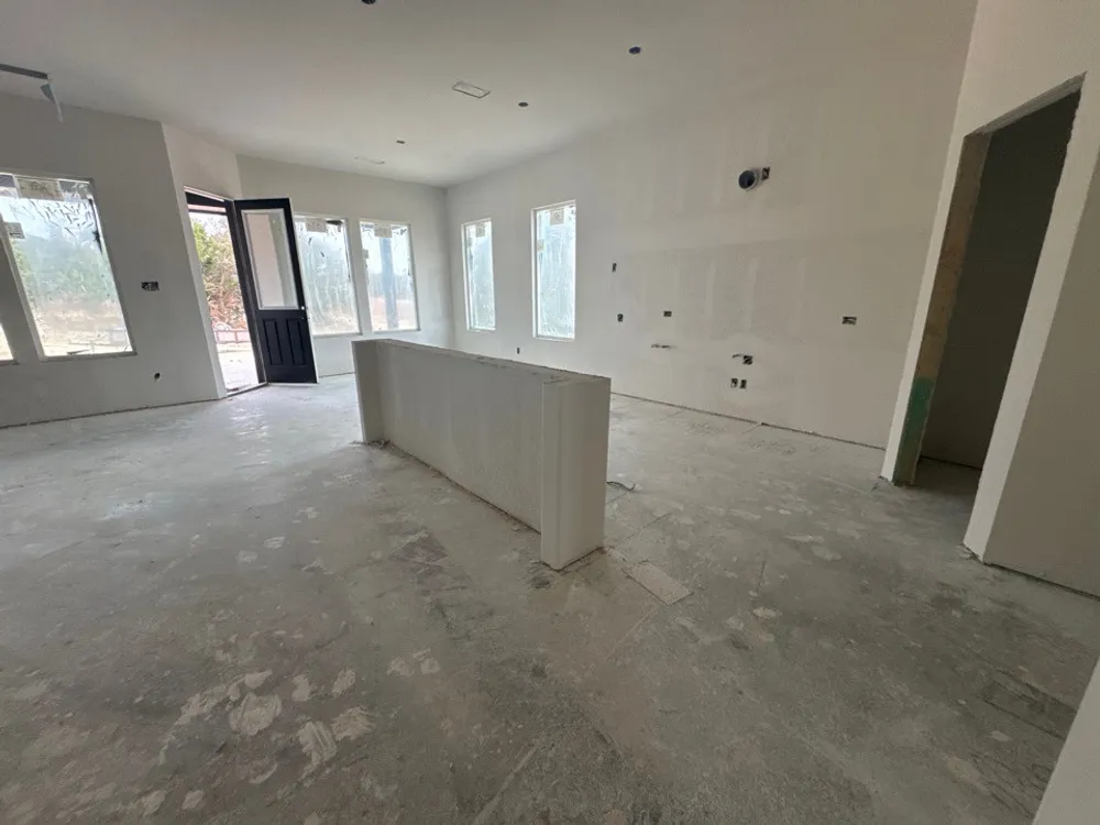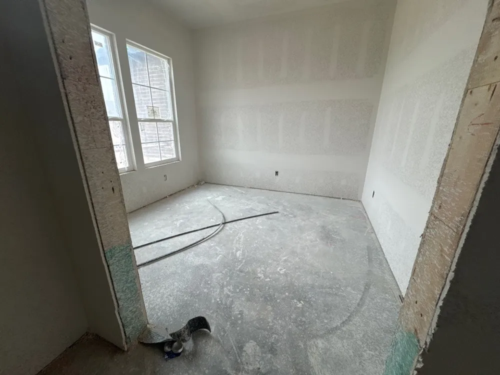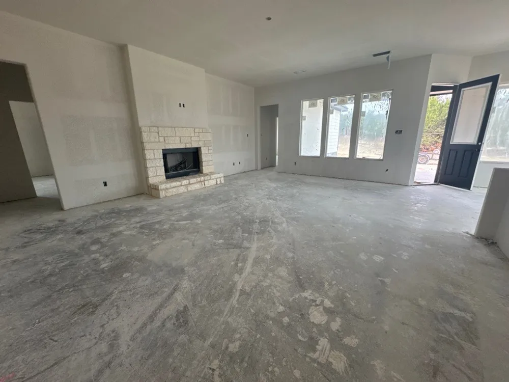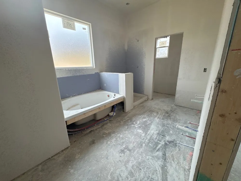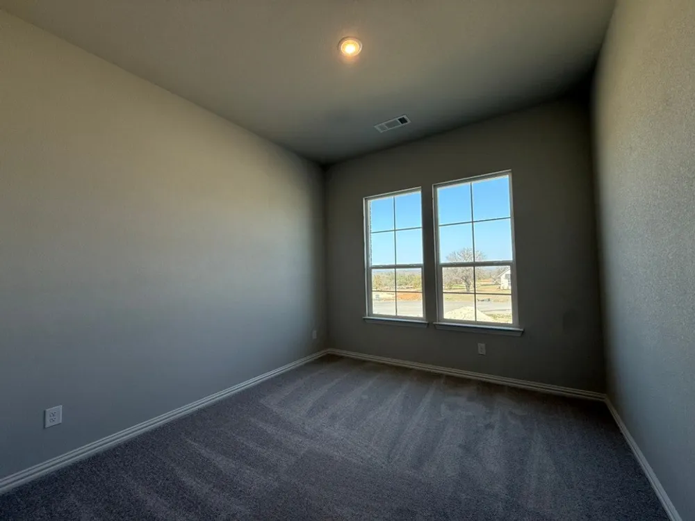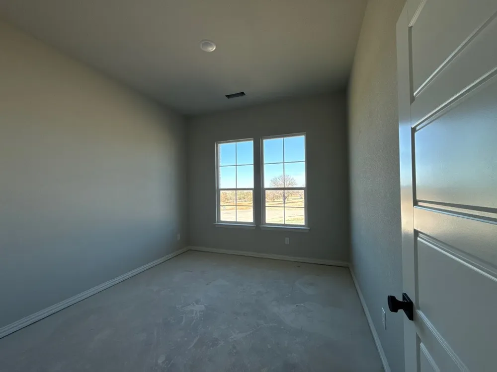 The Verbena floor plan features a modern, open-concept layout and the sought-after features todays homeowners are searching for. With four bedrooms, three bathrooms, and a flex room, this plan boasts just over 2,400 square feet of functional living space. Upon entering the home off the front porch, youre welcomed by an inviting foyer. Immediately to the left is a hallway with a bedroom, walk-in closet and full bathroom, as well as a linen closet. Across the foyer is a flex room, perfect for a home office, formal dining room or whatever need your family has for the space. Past the foyer is the family entry, with storage space and mud bench, which leads to the laundry room and two or three car attached garage. Through the entrance, the home opens up to a large family room with a stately fireplace. Adjacent to the family room is a gourmet kitchen, equipped with a walk-in pantry, ample counter space and an oversized island. Finishing off this open-concept living area is a dining space which overlooks the covered back patio. The remainder of this one-story floor plan is just off the living space. A hall leads to two bedrooms with walk-in closets, another linen closet and a shared full bathroom. The back corner of the home offers privacy for the owners suite, featuring a massive walk-in closet and bathroom with a dual-sink vanity, standalone soaking tub and glass-enclosed shower.