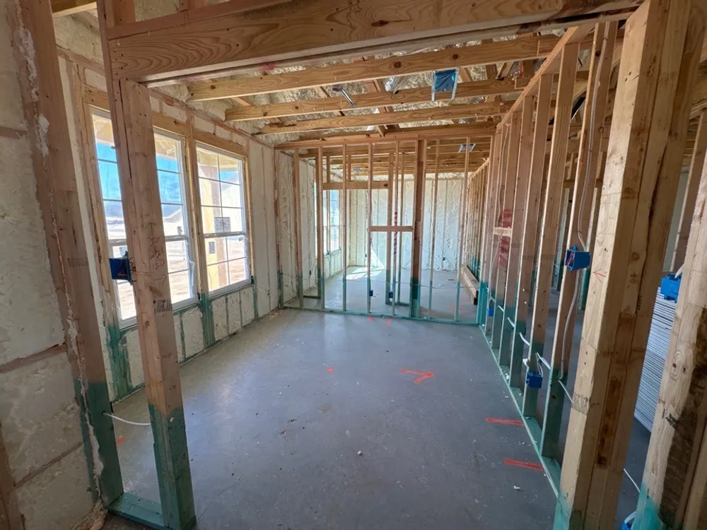 Inside, the 2,033-square-foot plan is designed with the busy family in mind. Keep all the main living concentrated in an open floor plan where walls dont divide you. Whether youre watching television in the large family room, entertaining in the dining room, or handling the kitchen duties, you can see everyone and everything. The kitchens center island functions like a hub. Sit down for a casual meal at the breakfast bar, sort the mail, catch up on the daily happenings, wash the dishes, or start prepping the next meal. Adjacent to the kitchen, you have the functional center of the home: mudroom and laundry. A hall bench and closet provide you with the organization you need to keep the clutter at bay. Your owner's suite is tucked away in the farthest corner of this single-level floor plan. Separated with a vestibule entrance, you have a private retreat. The owner's bath includes both a soaking tub and walk-in shower, plus dual vanities and a private water closet, so its very shareable. The other 2 secondary bedrooms of this split floor plan anchor the other side of the home where they share the second full bath. Both bedrooms are identically sized with plenty of space for anyone from a toddler to teen to another adult member of your household. The Cibolo also gives you the freedom of a flex room off the foyer. Convert it to the space you want to meet your needs.