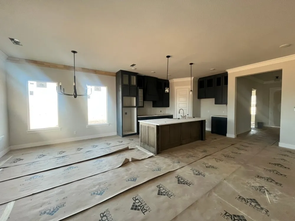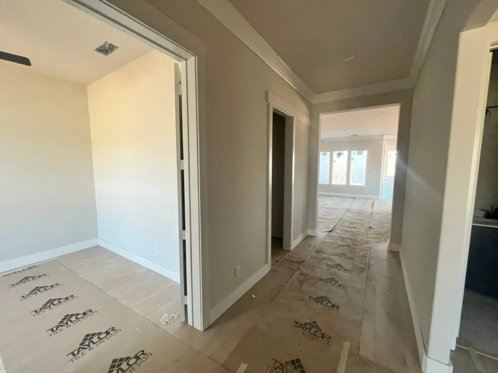 The Verbena floor plan features a modern, open-concept layout and the sought-after features todays homeowners are searching for. With four bedrooms, three bathrooms, and a flex room, this plan boasts just over 2,400 square feet of functional living space. Upon entering the home off the front porch, youre welcomed by an inviting foyer. Immediately to the left is a hallway with a bedroom, walk-in closet and full bathroom, as well as a linen closet. Across the foyer is a flex room, perfect for a home office, formal dining room or whatever need your family has for the space. Past the foyer is the family entry, with storage space and mud bench, which leads to the laundry room and two or three car attached garage. Through the entrance, the home opens up to a large family room with a stately fireplace. Adjacent to the family room is a gourmet kitchen, equipped with a walk-in pantry, ample counter space and an oversized island. Finishing off this open-concept living area is a dining space which overlooks the covered back patio. The remainder of this one-story floor plan is just off the living space. A hall leads to two bedrooms with walk-in closets, another linen closet and a shared full bathroom. The back corner of the home offers privacy for the owners suite, featuring a massive walk-in closet and bathroom with a dual-sink vanity, standalone soaking tub and glass-enclosed shower.