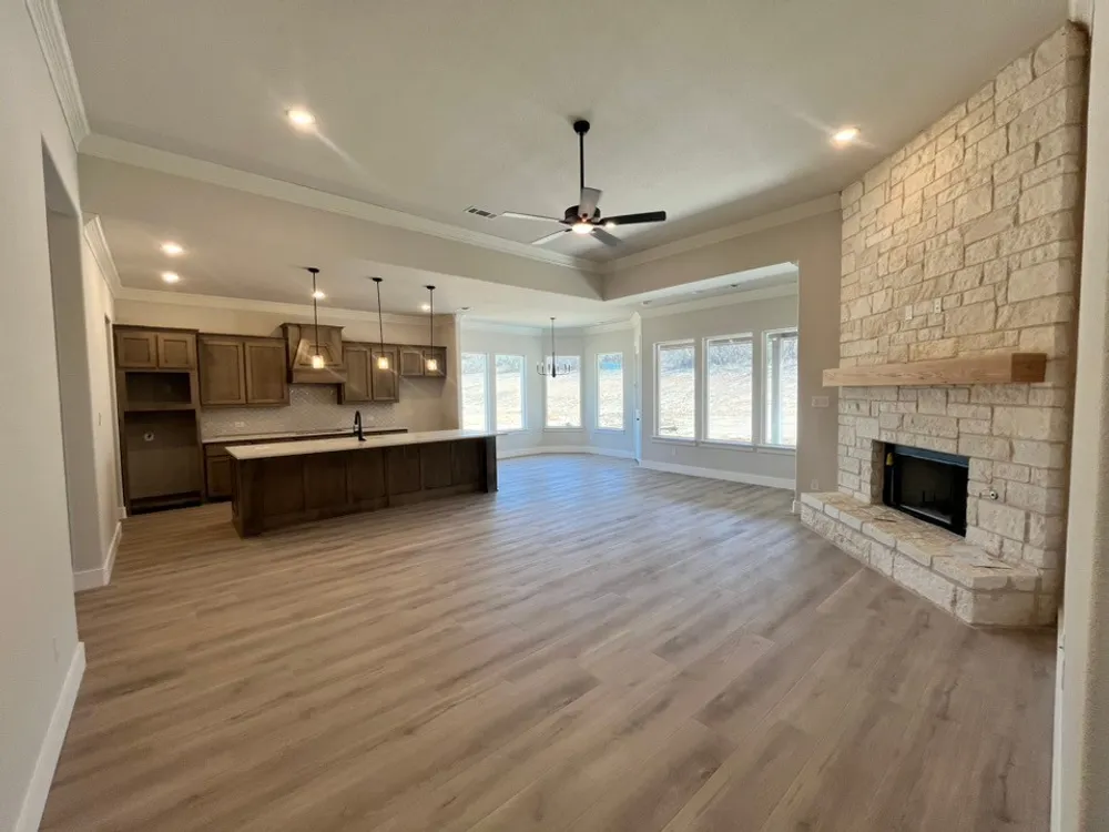 Step into the Bluebonnet by Riverside Homebuilders and embrace a lifestyle of comfort and functionality. With 4 bedrooms and 3 bathrooms sprawled over 2,686 square feet, this single-story haven offers ample space for every member of the family. As you enter through the inviting porch, the airy foyer sets the tone for the home's open layout. To the left, a flex room awaits, beckoning to be transformed into your ideal spacewhether you envision a home office, gym or hobby room. Continue through the foyer to discover the heart of the homea luminous dining room bathed in natural light. Beyond lies the main living area, a seamless fusion of the expansive kitchen, cozy family room featuring a fireplace and a charming nook adorned with picturesque windows. On the right wing of the home, privacy awaits with three traditional bedrooms and a breathtaking owner's suite. The owner's retreat boasts a spacious walk-in closet and a spa-like bathroom, offering a sanctuary for relaxation. Convenience is paramount with the laundry situated just off the bedrooms, accompanied by a mud bench near the garage entrance. To embrace the beautiful DFW weather without having to leave your home, step outside to the generous covered patiowhere endless possibilities for outdoor enjoyment await. With its thoughtful design and inviting atmosphere, the Bluebonnet embodies the epitome of charming Texas living for all families alike.
