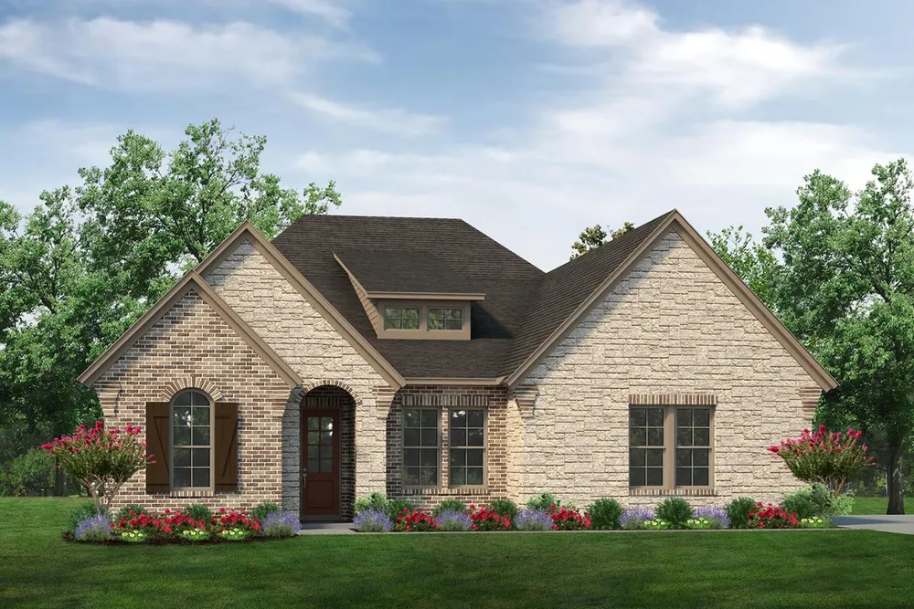 Step into the Bluebonnet by Riverside Homebuilders and embrace a lifestyle of comfort and functionality. With 4 bedrooms and 3 bathrooms sprawled over 2,686 square feet, this single-story haven offers ample space for every member of the family. As you enter through the inviting porch, the airy foyer sets the tone for the home's open layout. To the left, a flex room awaits, beckoning to be transformed into your ideal spacewhether you envision a home office, gym or hobby room. Continue through the foyer to discover the heart of the homea luminous dining room bathed in natural light. Beyond lies the main living area, a seamless fusion of the expansive kitchen, cozy family room featuring a fireplace and a charming nook adorned with picturesque windows. On the right wing of the home, privacy awaits with three traditional bedrooms and a breathtaking owner's suite. The owner's retreat boasts a spacious walk-in closet and a spa-like bathroom, offering a sanctuary for relaxation. Convenience is paramount with the laundry situated just off the bedrooms, accompanied by a mud bench near the garage entrance. To embrace the beautiful DFW weather without having to leave your home, step outside to the generous covered patiowhere endless possibilities for outdoor enjoyment await. With its thoughtful design and inviting atmosphere, the Bluebonnet embodies the epitome of charming Texas living for all families alike.