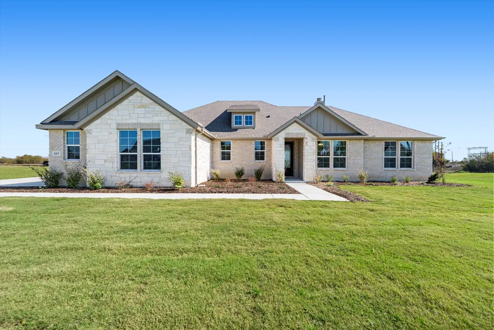 Inside, the 2,033-square-foot plan is designed with the busy family in mind. Keep all the main living concentrated in an open floor plan where walls dont divide you. Whether youre watching television in the large family room, entertaining in the dining room, or handling the kitchen duties, you can see everyone and everything. The kitchens center island functions like a hub. Sit down for a casual meal at the breakfast bar, sort the mail, catch up on the daily happenings, wash the dishes, or start prepping the next meal. Adjacent to the kitchen, you have the functional center of the home: mudroom and laundry. A hall bench and closet provide you with the organization you need to keep the clutter at bay. Your owner's suite is tucked away in the farthest corner of this single-level floor plan. Separated with a vestibule entrance, you have a private retreat. The owner's bath includes both a soaking tub and walk-in shower, plus dual vanities and a private water closet, so its very shareable. The other 2 secondary bedrooms of this split floor plan anchor the other side of the home where they share the second full bath. Both bedrooms are identically sized with plenty of space for anyone from a toddler to teen to another adult member of your household. The Cibolo also gives you the freedom of a flex room off the foyer. Convert it to the space you want to meet your needs.