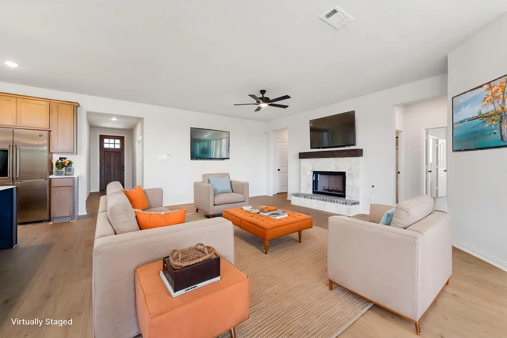 We are excited to introduce a brand new floor plan called the Salado! The entry is open to a bright flex Room on the right. The private owner's suite is separate from bedrooms 2 through 4. The owner's suite is complete by including a garden tub, separate shower, private commode, walk in closet, and dual, separate vanities. Adjacent to the owner's suite is the large living room with a fireplace option and open to the spacious island kitchen.
