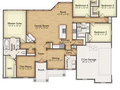 The 4-bedroom Colorado 2 presents a creative yet sensible layout of the homes 2,417 square feet of living space. Right from the front entrance, you can see the entire main living area. This open concept enhances the spacious feeling and makes it easy to have conversations no matter where you areperfect for entertaining! The kitchen is a definite eye-catcher in the Colorado 2. Weve incorporated a massive center island that doubles your counter space and provides comfortable seating for 4 people at the breakfast bar. You can also enjoy the view of the fireplace in the family room. If a formal dining room is on your new home wish list, check that off. Just a few steps from the kitchen, this floor plan has just the room for those special occasions. If formal isnt your thing, use this as a playroom or a living room. Across the foyer, the Colorado 2 also gives you a flex room to expand on the versatility. With a few small adjustments, you could convert it to a fifth bedroom. The design of the owner's suite is one of the (many) reasons people love this floor plan. The bedroom is nestled in the back of the home under a tray ceiling that accentuates the roominess. The Colorado 2 smartly uses space in the bathroom for both a soaking tub and step-in shower, along with dual vanities and a private water closet. Then your suite is completed with an expansive walk-in closet with wooden shelves and racks ready and waiting for your wardrobe. The 3 secondary bedrooms are clustered in a suite-like space on the other side of the homes layout. Two of them offer a walk-in closet, while the third one gives just a little bit more floor space. The 3 bedrooms share the homes second full bath. For a home that creates the ideal balance between togetherness and privacy, the Colorado 2 is fit to be tried!