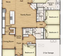 Step into the Bluebonnet by Riverside Homebuilders and embrace a lifestyle of comfort and functionality. With 4 bedrooms and 3 bathrooms sprawled over 2,686 square feet, this single-story haven offers ample space for every member of the family. As you enter through the inviting porch, the airy foyer sets the tone for the home's open layout. To the left, a flex room awaits, beckoning to be transformed into your ideal spacewhether you envision a home office, gym or hobby room. Continue through the foyer to discover the heart of the homea luminous dining room bathed in natural light. Beyond lies the main living area, a seamless fusion of the expansive kitchen, cozy family room featuring a fireplace and a charming nook adorned with picturesque windows. On the right wing of the home, privacy awaits with three traditional bedrooms and a breathtaking owner's suite. The owner's retreat boasts a spacious walk-in closet and a spa-like bathroom, offering a sanctuary for relaxation. Convenience is paramount with the laundry situated just off the bedrooms, accompanied by a mud bench near the garage entrance. To embrace the beautiful DFW weather without having to leave your home, step outside to the generous covered patiowhere endless possibilities for outdoor enjoyment await. With its thoughtful design and inviting atmosphere, the Bluebonnet embodies the epitome of charming Texas living for all families alike.