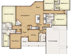 The 4-bedroom Colorado 3 presents a creative yet sensible layout of the homes 2,483 square feet of living space. Right from the front entrance, you can see the entire main living area. This open concept enhances the spacious feeling and makes it easy to have conversations no matter where you areperfect for entertaining! The kitchen is a definite eye-catcher in the Colorado 3. Weve incorporated a massive center island that doubles your counter space and provides comfortable seating for 4 people at the breakfast bar. You can also enjoy the view of the fireplace in the family room. If a formal dining room is on your new home wish list, check that off. Just a few steps from the kitchen, this floor plan has just the room for those special occasions. If formal isnt your thing, use this as a playroom or a living room. Across the foyer, the Colorado 3 also gives you a flex room to expand on the versatility. With a few small adjustments, you could convert it to a fifth bedroom. The design of the owner's suite is one of the (many) reasons people love this floor plan. The bedroom is nestled in the back of the home under a tray ceiling that accentuates the roominess. The Colorado 3 smartly uses space in the bathroom for both a soaking tub and step-in shower, along with dual vanities and a private water closet. Then your suite is completed with an expansive walk-in closet with wooden shelves and racks ready and waiting for your wardrobe. The 3 secondary bedrooms are clustered in a suite-like space on the other side of the homes layout. Two of them offer a walk-in closet, while the third one gives just a little bit more floor space. The 3 bedrooms share the homes second full bath. For a home that creates the ideal balance between togetherness and privacy, the Colorado 3 is fit to be tried!