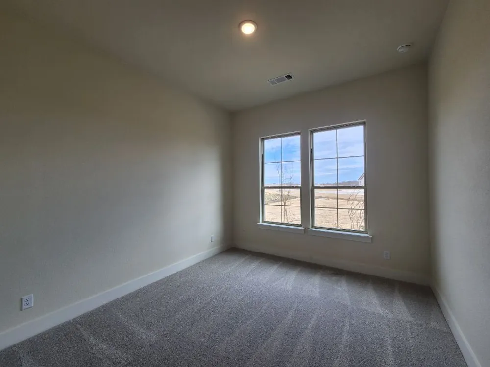 The Verbena floor plan features a modern, open-concept layout and the sought-after features todays homeowners are searching for. With four bedrooms, three bathrooms, and a flex room, this plan boasts just over 2,400 square feet of functional living space. Upon entering the home off the front porch, youre welcomed by an inviting foyer. Immediately to the left is a hallway with a bedroom, walk-in closet and full bathroom, as well as a linen closet. Across the foyer is a flex room, perfect for a home office, formal dining room or whatever need your family has for the space. Past the foyer is the family entry, with storage space and mud bench, which leads to the laundry room and two or three car attached garage. Through the entrance, the home opens up to a large family room with a stately fireplace. Adjacent to the family room is a gourmet kitchen, equipped with a walk-in pantry, ample counter space and an oversized island. Finishing off this open-concept living area is a dining space which overlooks the covered back patio. The remainder of this one-story floor plan is just off the living space. A hall leads to two bedrooms with walk-in closets, another linen closet and a shared full bathroom. The back corner of the home offers privacy for the owners suite, featuring a massive walk-in closet and bathroom with a dual-sink vanity, standalone soaking tub and glass-enclosed shower.