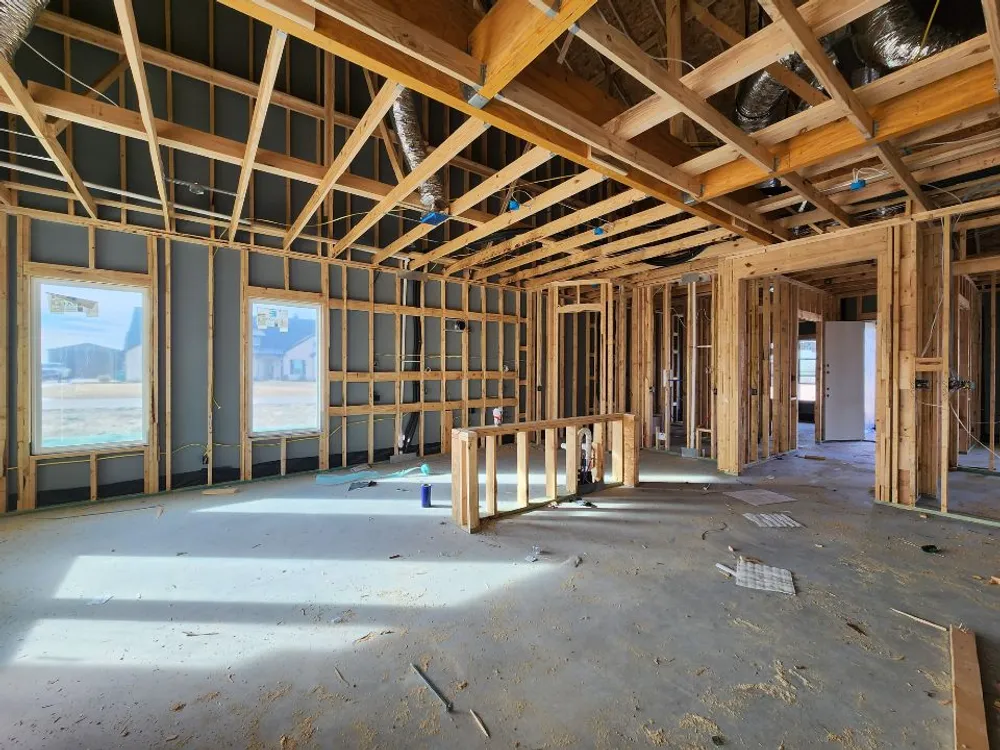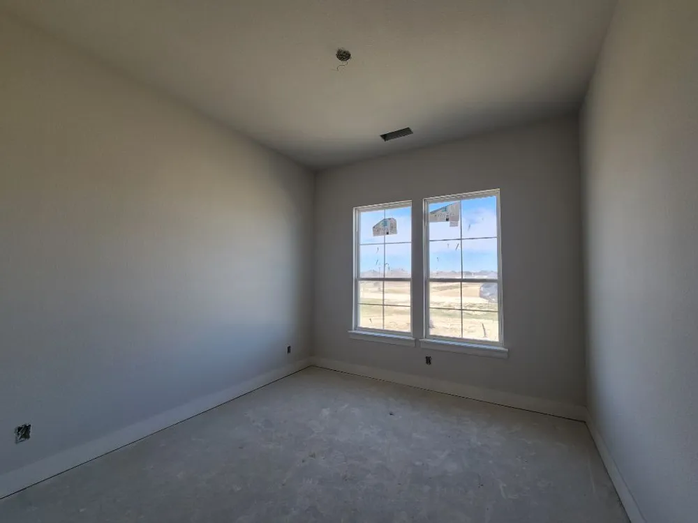 The Verbena floor plan features a modern, open-concept layout and the sought-after features todays homeowners are searching for. With four bedrooms, three bathrooms, and a flex room, this plan boasts just over 2,400 square feet of functional living space. Upon entering the home off the front porch, youre welcomed by an inviting foyer. Immediately to the left is a hallway with a bedroom, walk-in closet and full bathroom, as well as a linen closet. Across the foyer is a flex room, perfect for a home office, formal dining room or whatever need your family has for the space. Past the foyer is the family entry, with storage space and mud bench, which leads to the laundry room and two or three car attached garage. Through the entrance, the home opens up to a large family room with a stately fireplace. Adjacent to the family room is a gourmet kitchen, equipped with a walk-in pantry, ample counter space and an oversized island. Finishing off this open-concept living area is a dining space which overlooks the covered back patio. The remainder of this one-story floor plan is just off the living space. A hall leads to two bedrooms with walk-in closets, another linen closet and a shared full bathroom. The back corner of the home offers privacy for the owners suite, featuring a massive walk-in closet and bathroom with a dual-sink vanity, standalone soaking tub and glass-enclosed shower.