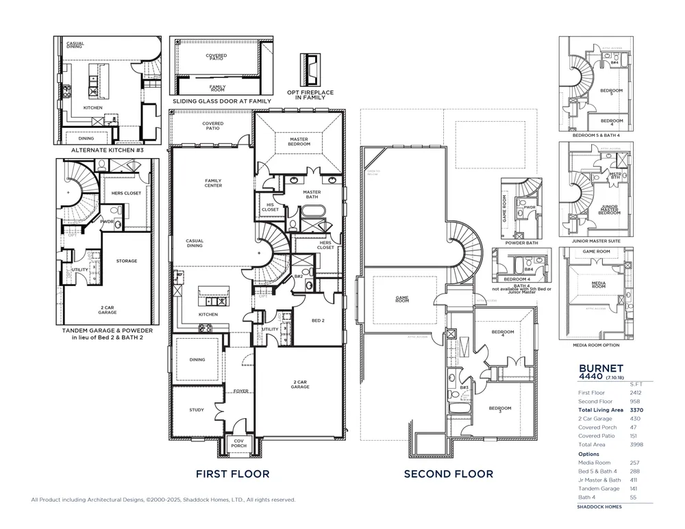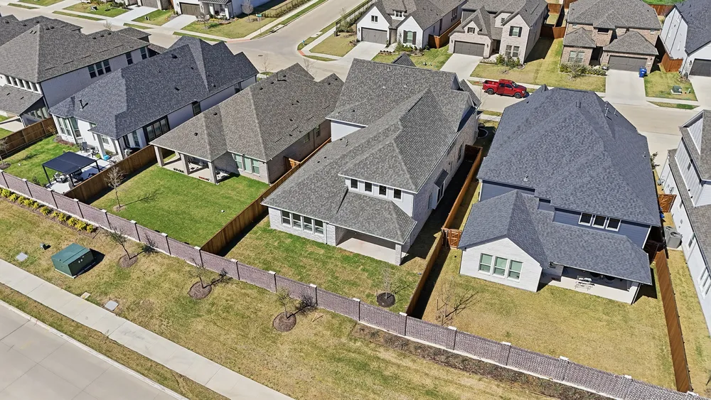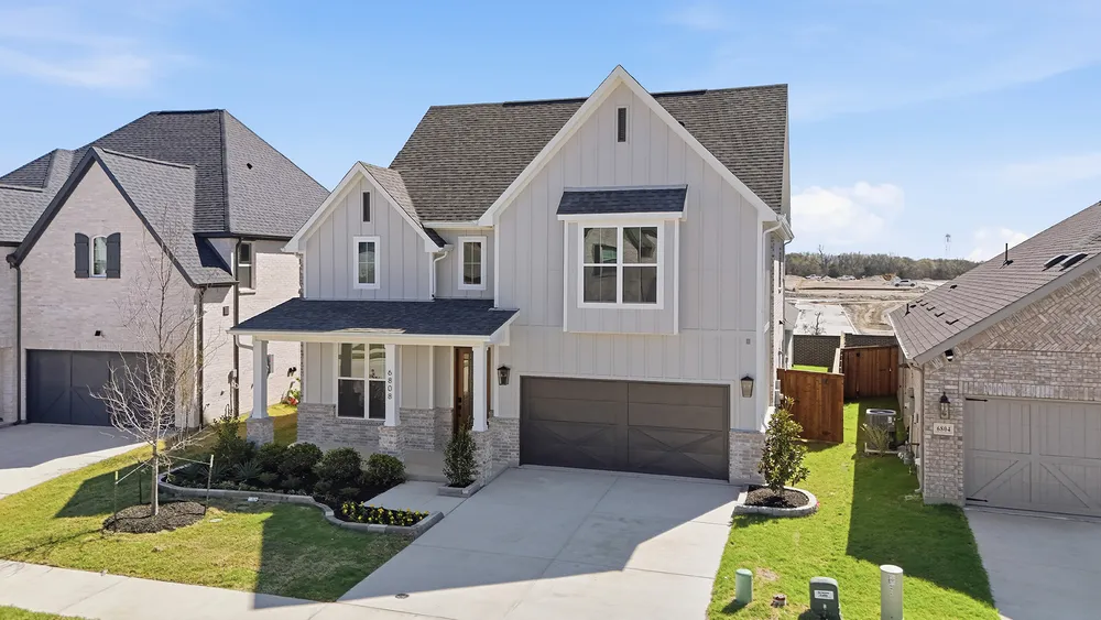 PROSPER ISD The Burnet Plan features a stunning Farmhouse Modern exterior with a welcoming front porch. Inside, youll find an elegant curved staircase, a modern central fireplace, and soaring ceilings in the family room. The chefs kitchen boasts a large island, painted cabinetry, and white quartz countertops. The primary suite includes a freestanding tub, a spacious shower with a frameless glass enclosure, and his-and-hers closets. Light nail-down hardwood floors bring warmth to the main living areas on the first floor, while upstairs offers a media room and a fourth full bath. Enjoy an upgraded technology and lighting package, along with many additional enhancements throughout the home. No MUD or PID tax! Welcome home to our Shaddock family!