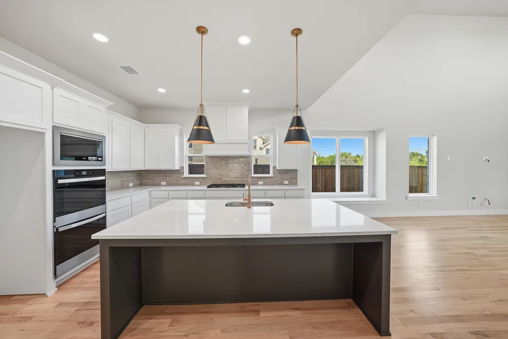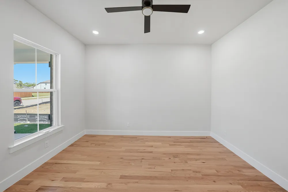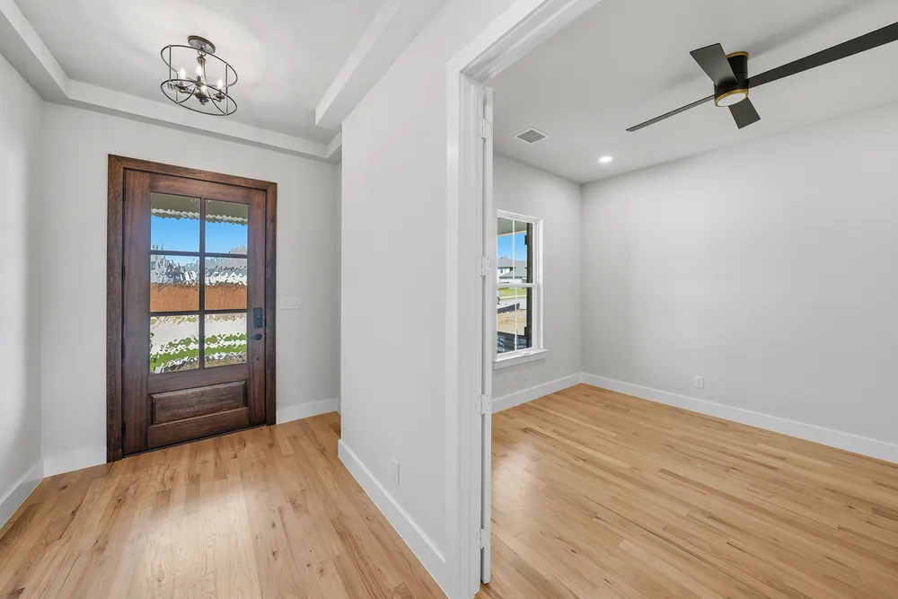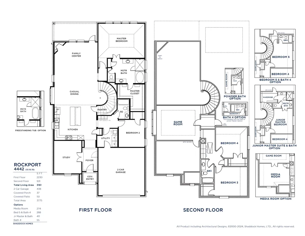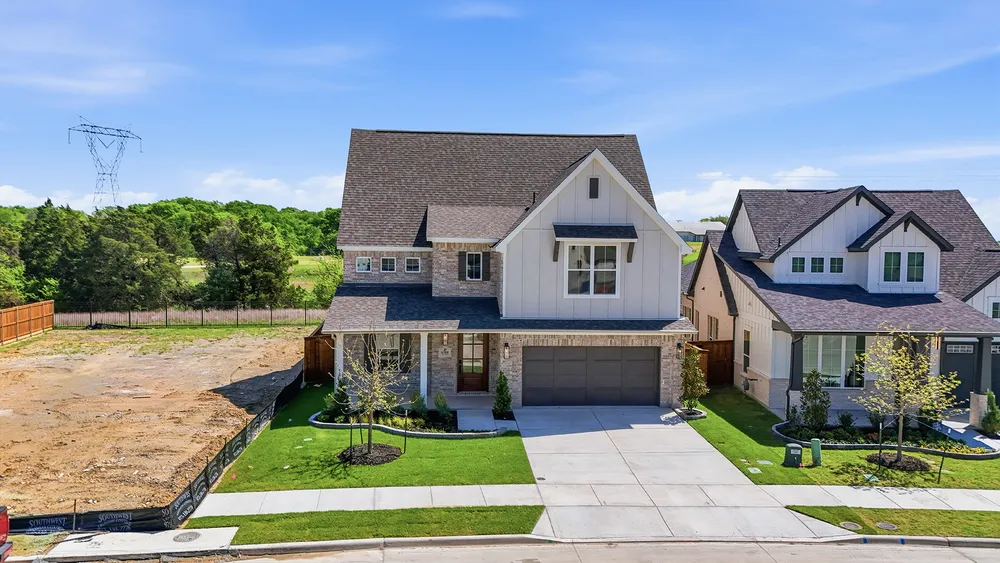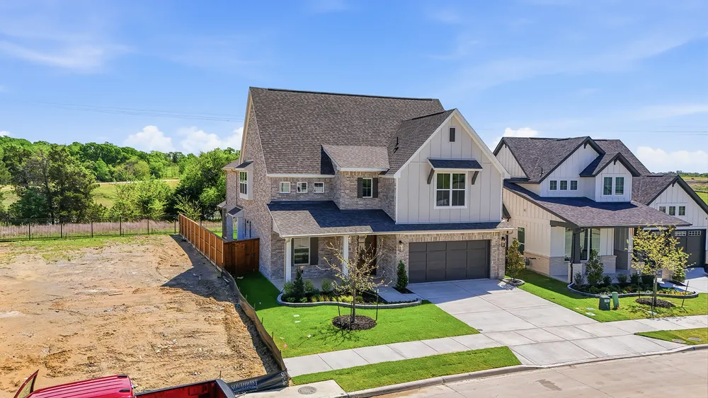 A desirable two-story ceiling enhances the casual dining and family rooms, highlighted by an elegant curved staircase with wrought-iron balusters that provide a beautiful view from the upstairs game room. The primary bathroom features a freestanding tub and a large closet. Upstairs includes two guest bedrooms, two full baths, and a spacious media and game room equipped with 7.1 pre-wired surround sound. This luxury home includes nail-down hardwood flooring in focal areas, a light-colored brick faade, 8 doors downstairs, designer lighting, plush carpet, quartz countertops in the kitchen, and many more luxury selections. No MUD or PID tax! Welcome home to our Shaddock family!