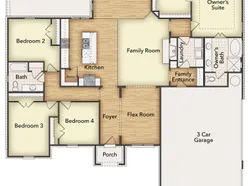 We are excited to introduce a brand new floor plan called the Salado! The entry is open to a bright flex Room on the right. The private owner's suite is separate from bedrooms 2 through 4. The owner's suite is complete by including a garden tub, separate shower, private commode, walk in closet, and dual, separate vanities. Adjacent to the owner's suite is the large living room with a fireplace option and open to the spacious island kitchen.