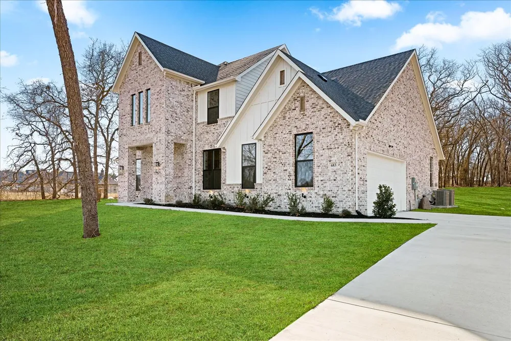 Welcome to 683 Bent Tree Lane in Brooks Meadow. The Aylin plan offers a game room, flex space, free-standing tub, double oven, and vaulted breakfast nook ceiling with beams. Set on a 1.023-acre homesite in Azle ISD, this home blends modern design and practical living for North Texas families.
